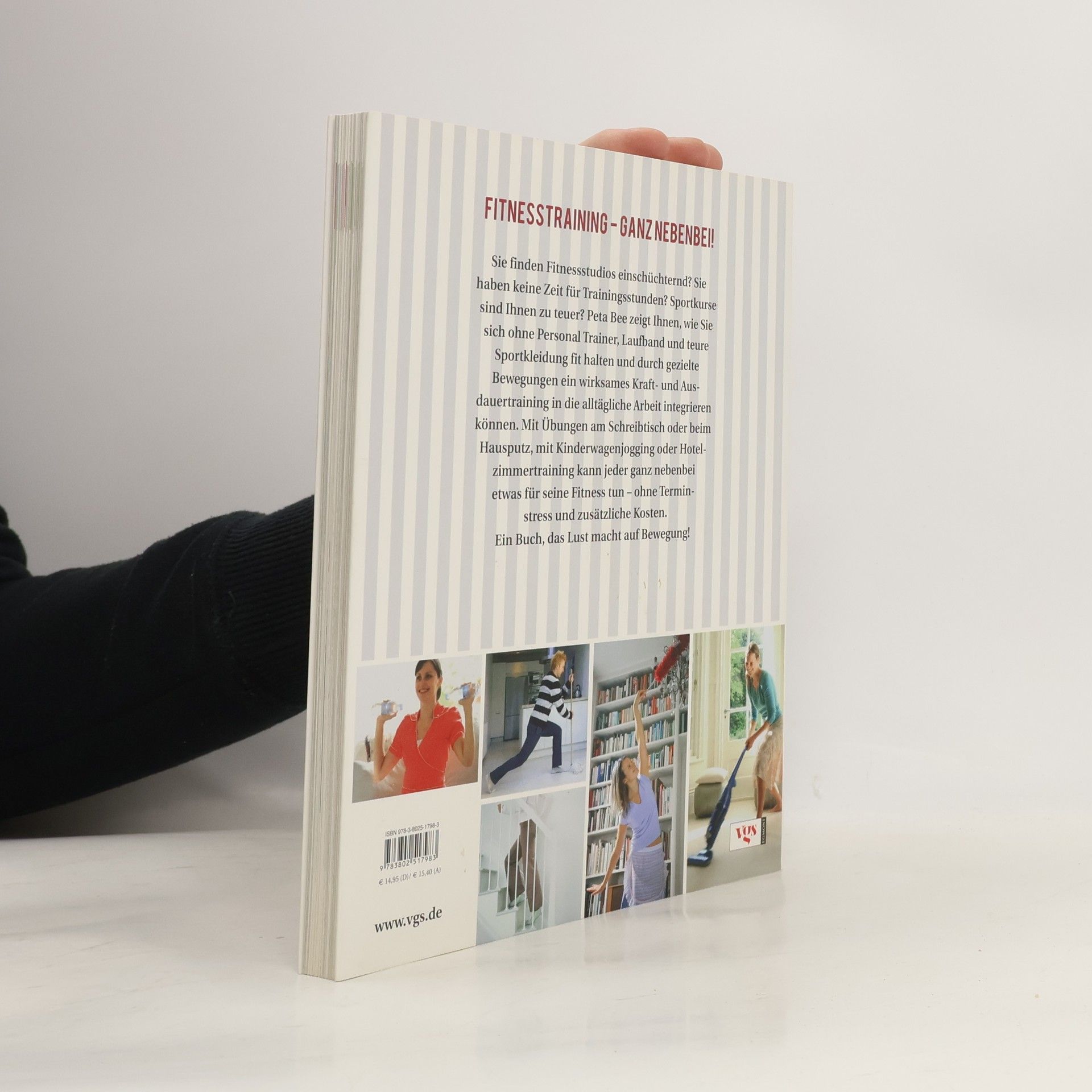 Sie finden Fitness-Studios einschüchternd? Sie haben keine Zeit für Trainingsstunden? Sportkurse sind Ihnen zu teuer? Peta Bee zeigt Ihnen, wie Sie sich ohne Personal Trainer, Laufband und teure Sportkleidung fit halten und durch gezielte Bewegungen ein wirksames Kraft- und Ausdauertraining in die alltägliche Arbeit integrieren können. Mit Übungen am Schreibtisch oder beim Hausputz, mit Kinderwagenjogging oder Hotelzimmertraining kann jeder ganz nebenbei etwas für seine Fitness tun – ohne Terminstress und zusätzliche Kosten. Ein Buch, das Lust macht auf Bewegung!