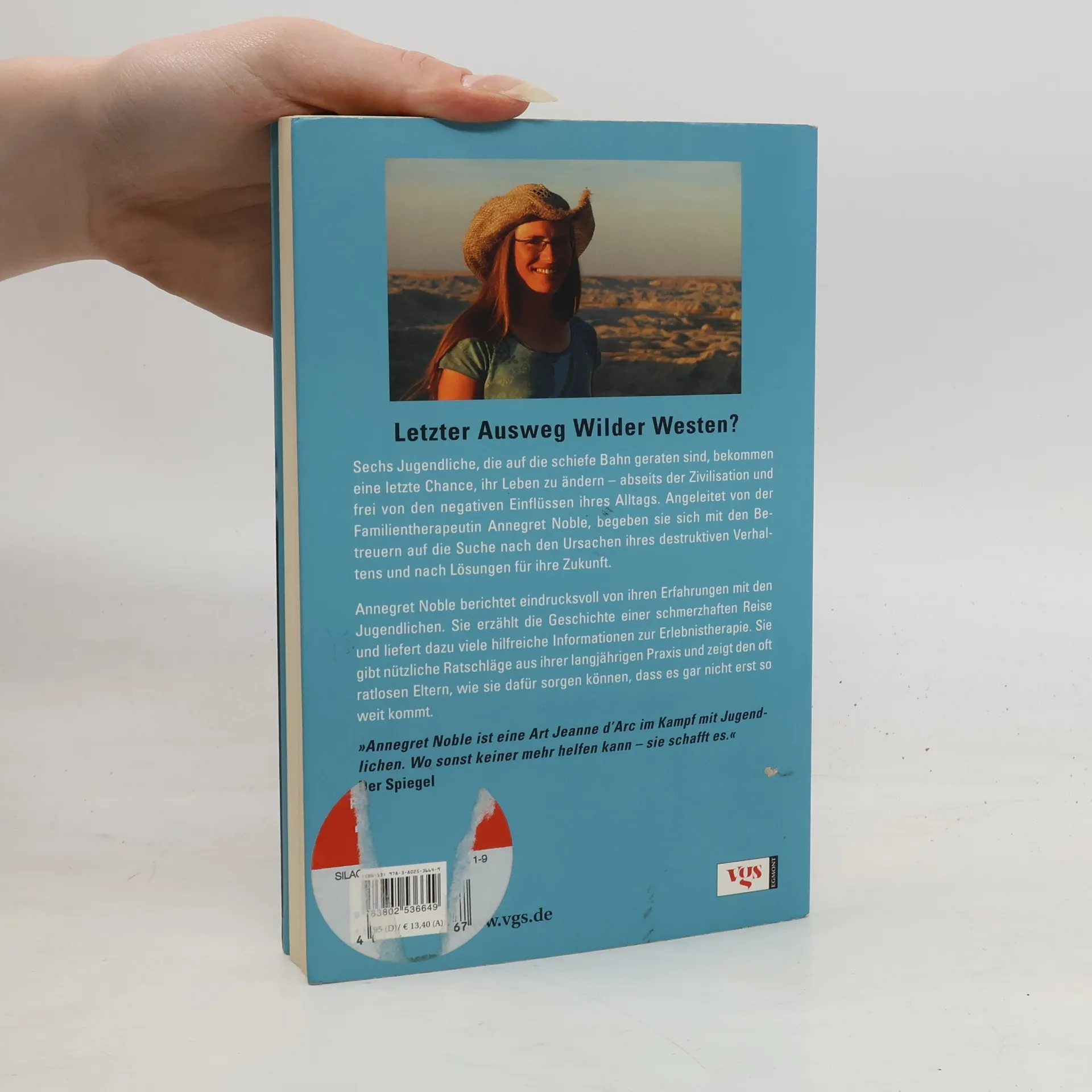 Annegret Noble arbeitet seit elf Jahren mit Jugendlichen. Die Familientherapeutin entdeckte schnell, dass sich Jugendliche langfristiger verändern, wenn die Therapie in der Natur stattfindet, weit weg von den alltäglichen Ablenkungen der modernen Gesellschaft. Ein Schwerpunkt ihrer Arbeit sind Jugendliche und Familien, die Probleme mit Drogen und Alkohol haben. Sie lebt mit ihrem Mann im Norden Montanas. Einem breiteren Publikum wurde sie durch ihre Mitwirkung in der RTL-Sendung „Teenager außer Kontrolle“ bekannt.