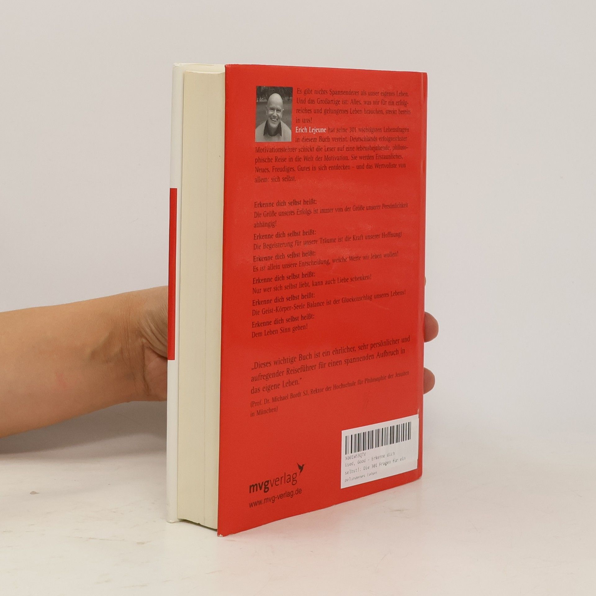 Erich Lejeune hat mit "Erkenne dich selbst" ein völlig neuartiges Grundlagenbuch zur Motivation geschrieben. In Zeiten globaler Krisen zeigt Deutschlands erfolgreichster Motivationstrainer einen philosophischen Ausweg aus der Unsicherheit. Er stellt die 301 wichtigsten Fragen des Lebens und führt die Leser zu ihren individuellen Antworten. Auf dieser Reise in ihr Innerstes entdecken sie das Wertvollste, das sie haben - sich selbst. Denn nur wer sich selbst gefunden hat, findet seinen Platz in dieser Welt.