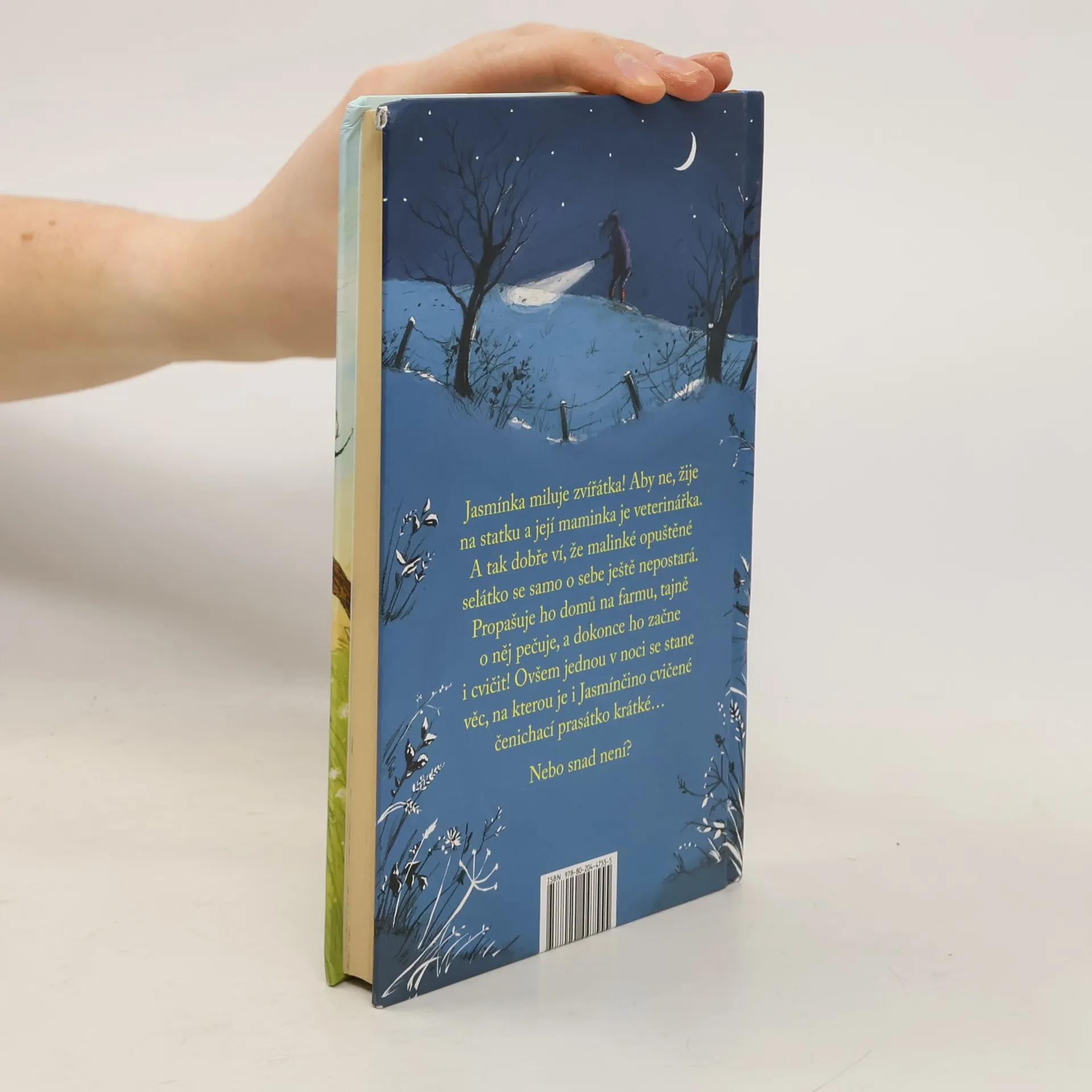 Jasmínka miluje zvířátka! Aby ne – žije na statku a její maminka je veterinářka. A tak dobře ví, že malinké opuštěné selátko se samo o sebe ještě nepostará. Propašuje ho domů na farmu, tajně o něj pečuje, a dokonce ho začne i cvičit! Ovšem jednou v noci se stane věc, na kterou je i Jasmínčino cvičené čenichací prasátko krátké… Nebo snad není?