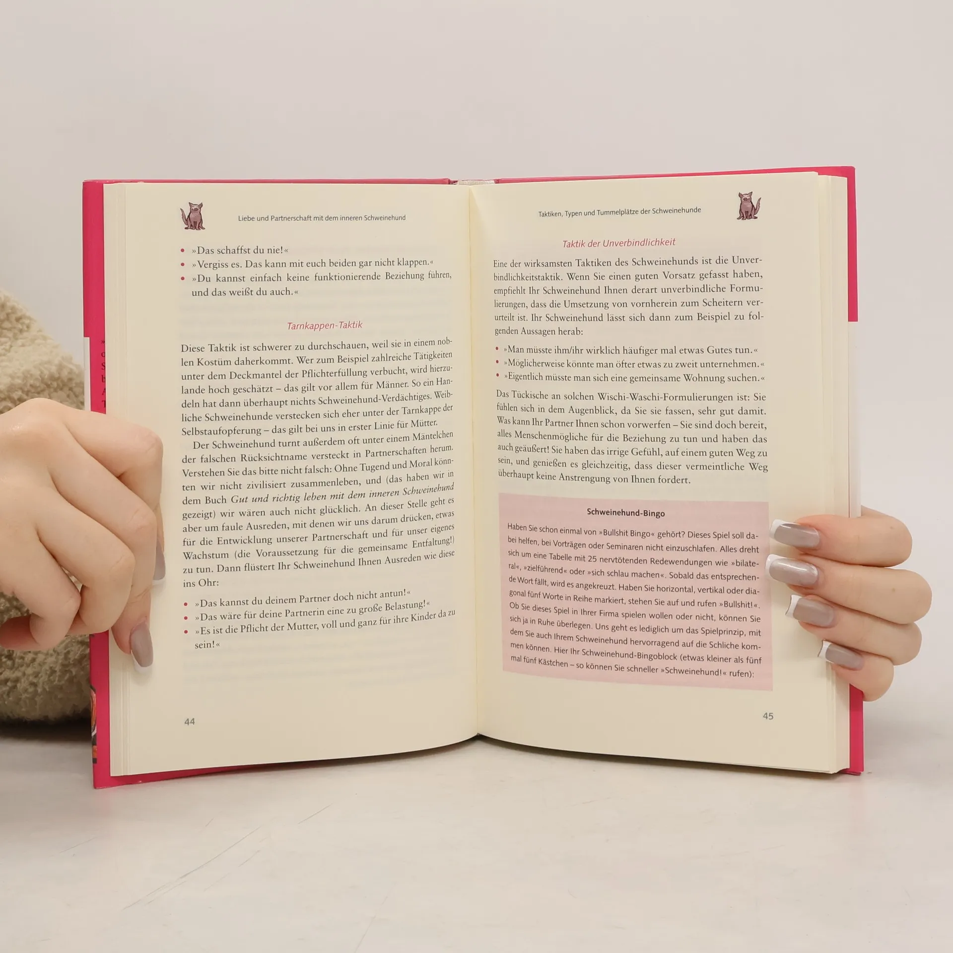 Zu Beginn einer Beziehung fällt es uns leicht, unserem Partner etwas Gutes zu tun oder ihm zuliebe Kompromisse einzugehen. Warum aber tun wir uns bloß so schwer damit, das auch nach der ersten Verliebtheit beizubehalten? Dieser humorvolle Ratgeber zeigt: Es sind unsere inneren Schweinehunde, die sich in unser Liebesleben einmischen! Sie sabotieren unsere Beziehung mit Unverbindlichkeit und Verzögerungstaktik (»Zusammenziehen? Vielleicht nächstes Jahr …«), Traditionsfloskeln (»Das hat meinen Ex auch nie gestört!«) oder mit der Absolution bei anderen (»Ich wäre gern mit dir essen gegangen, aber leider ist da dieser wichtige Kundentermin …«). Marco von Münchhausen enthüllt die Tricks und Taktiken der inneren Widersacher und erklärt die Motive, die dahinterstecken. Denn wer den inneren Schweinehund verstehen lernt, wird ihn davon überzeugen, dass das Leben mit Partner noch viel schöner ist!