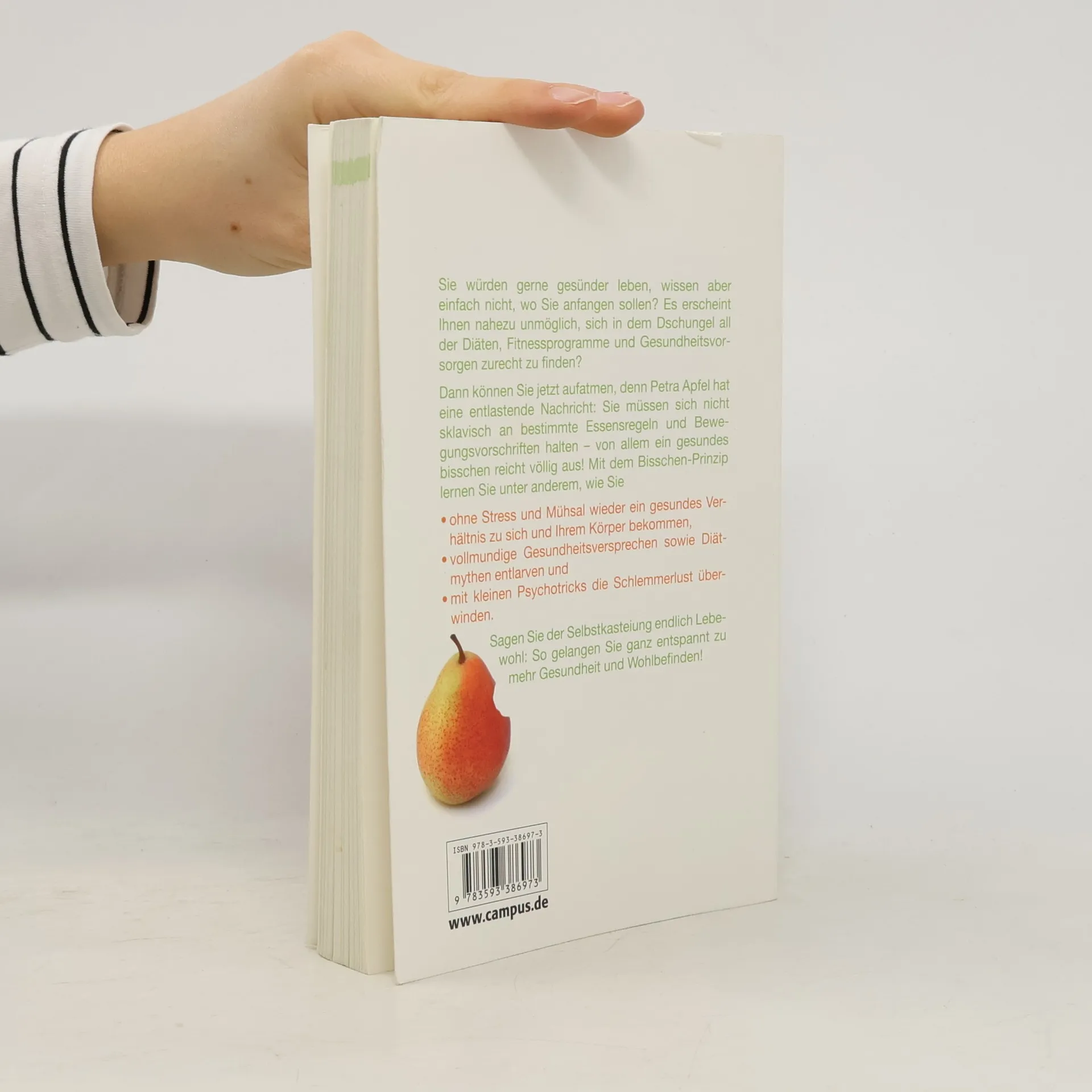 Treiben Sie mehr Sport, essen Sie viel Obst und Gemüse, machen Sie dies, machen Sie das – alles, um gesünder zu leben. Aber seien wir doch mal ehrlich, im Grunde machen diese Ratschläge und Tipps wohlmeinender Experten vor allem eins: ein schlechtes Gewissen. Zwischen lauter Ge- und Verboten sind wir leider ganz schnell an dem Punkt, entnervt aufzugeben. Dass »gesund leben« nicht »genussfrei leben« bedeutet und weniger oft mehr und sinnvoller ist, beweist jetzt ein Ratgeber, der die Dinge anders sieht. Mit ihm kann man die umfangreiche Selbstkasteiung endlich vergessen. Das »gesunde Bisschen« reicht völlig aus. Mit Petra Apfels alltagstauglichem Bisschen-Prinzip lernt man in kleinen Schritten besser zu leben – mit ein bisschen vernünftiger Ernährung, einem überschaubaren Maß an Bewegung und seelischer Ausgeglichenheit.