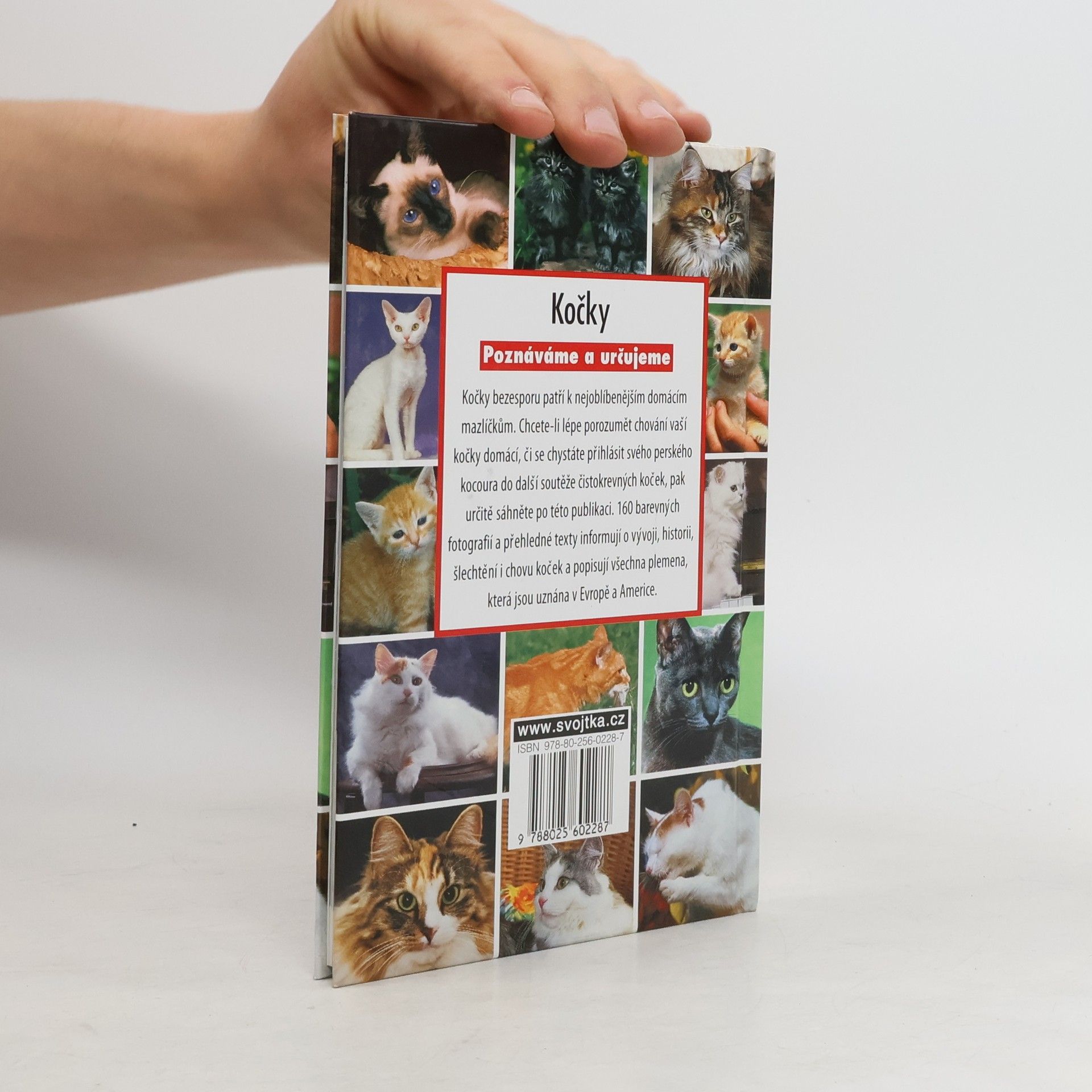 Úvodní kapitoly shrnují informace o kočičích smyslech, projevech a chování, standardech a výstavách čistokrevných koček. Následně jsou popsána všechna plemena, která jsou uznána v Evropě a Americe - kniha přináší údaje o jejich historii a původu, barevných variantách, charakteristických znacích a temperamentu.