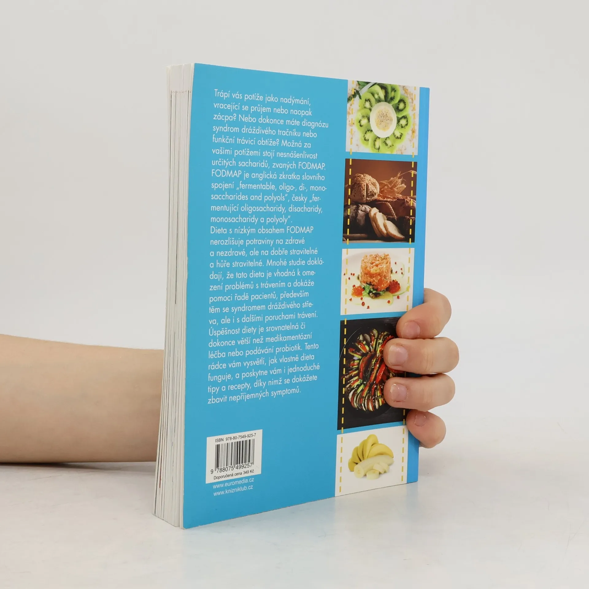 FODMAP je anglická zkratka pro oligosacharidy, disacharidy, monosacharidy a polyoly. Dieta s jejich vyloučením, v poslední době velice moderní, spočívá v eliminaci skupin vysoce fermentovatelných sacharidů, které někteří lidé špatně vstřebávají a které mohou zapříčinit nadměrné vylučování vody a plynů v tlustém střevě, následně průjem, nadýmání, otoky, bolesti břicha. První detailní průvodce touto dietou s mnoha lahodnými recepty se podrobně zabývá problémy, které FODMAP vyvolávají. Trávicí soustava člověka pracuje nepřetržitě, tiše a téměř nepovšimnutě. Když vše funguje, zapomínáme na ni. Ale co se stane, když se ozve bolest břicha, nadýmání, průjem nebo zácpa? Studie prokazují, že řadu problémů vyvolávají právě FODMAP, pokud jsou konzumovány ve velkém množství, nebo pokud je na ně někdo zvlášť citlivý. Bohužel se FODMAP stále více používají v potravinářském průmyslu, takže jich konzumujeme narůstající množství a není divu, že na zažívací obtíže si stěžuje stále větší množství lidí. Publikace shrnuje podstatné informace, vysvětluje princip stravy a nabízí mnoho lahodných receptů a jídelníčky s vyloučením FODMAP.