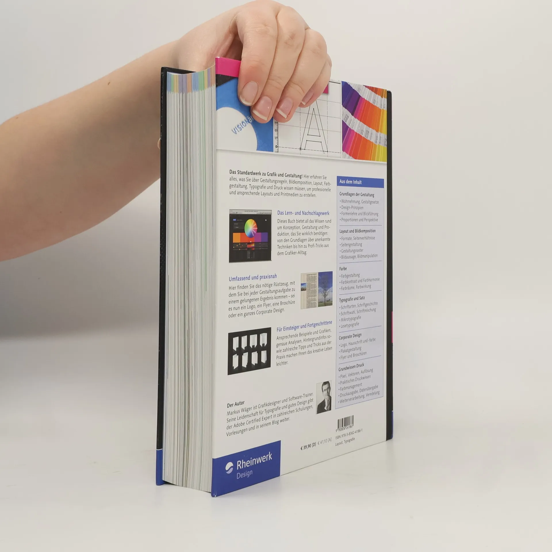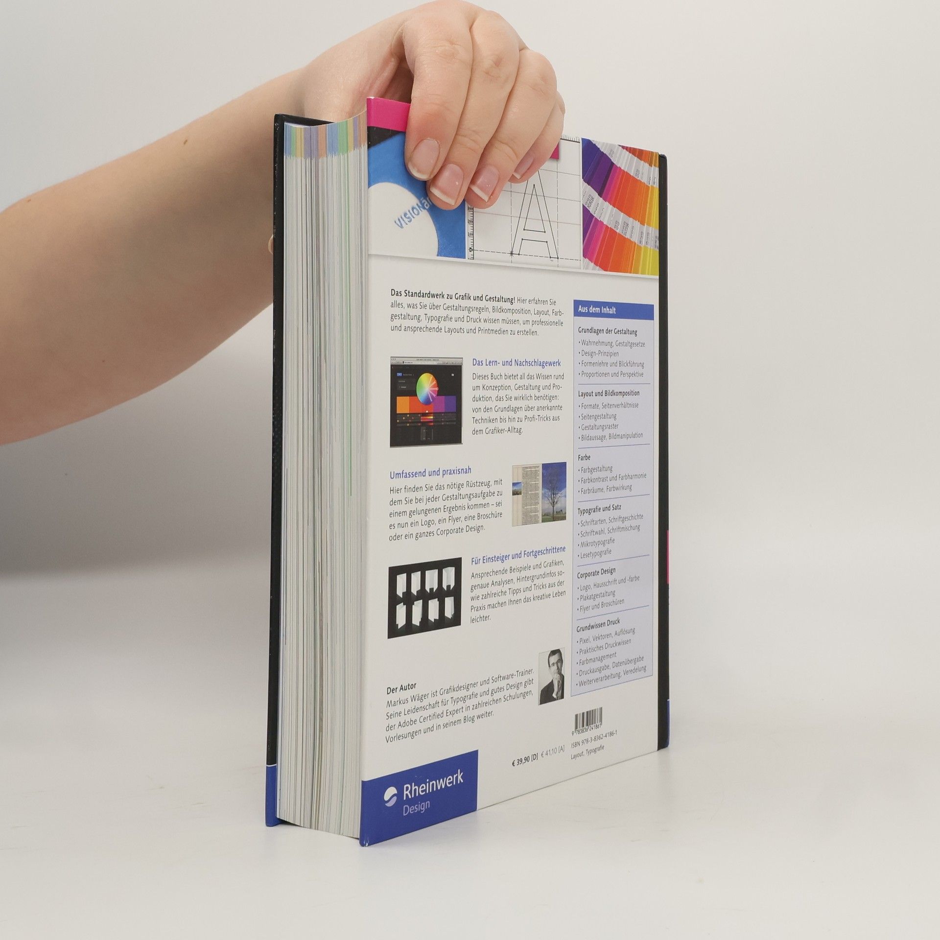 Die 3. Auflage des Standardwerks richtet sich an alle, die ihre Gestaltungskompetenzen verbessern möchten. Grafikdesigner Markus Wäger führt auf über 700 Seiten in die Welt der Gestaltung ein. Er vermittelt, wie man mit Formen, Farben, Typografie und Bildern optimale Ergebnisse erzielt – sei es für eine Visitenkarte oder das Layout eines Magazins. Sie lernen alles über Farbwahl, Schriftkombinationen, Lesbarkeit, Rastern und Bildqualität. Ansprechende Beispiele, sorgfältig gestaltete Grafiken und präzise Analysen unterstützen die Anwendung des Gelernten in eigenen Projekten. Praktische Tipps, erprobte Arbeitsweisen und die Erfahrungen des Autors machen das Buch zu einer wertvollen Ressource, die als Nachschlagewerk und Inspirationsquelle dient. Mit diesem Buch sind kreative und professionelle Layouts leicht umsetzbar. Es ist besonders für angehende Mediengestalter ein unverzichtbarer Begleiter. Die Inhalte umfassen Grundlagen der Gestaltgesetze, Formenlehre, Proportionen, Farben und Bilder, Typografie, Corporate Design sowie DTP-Grundlagen.
