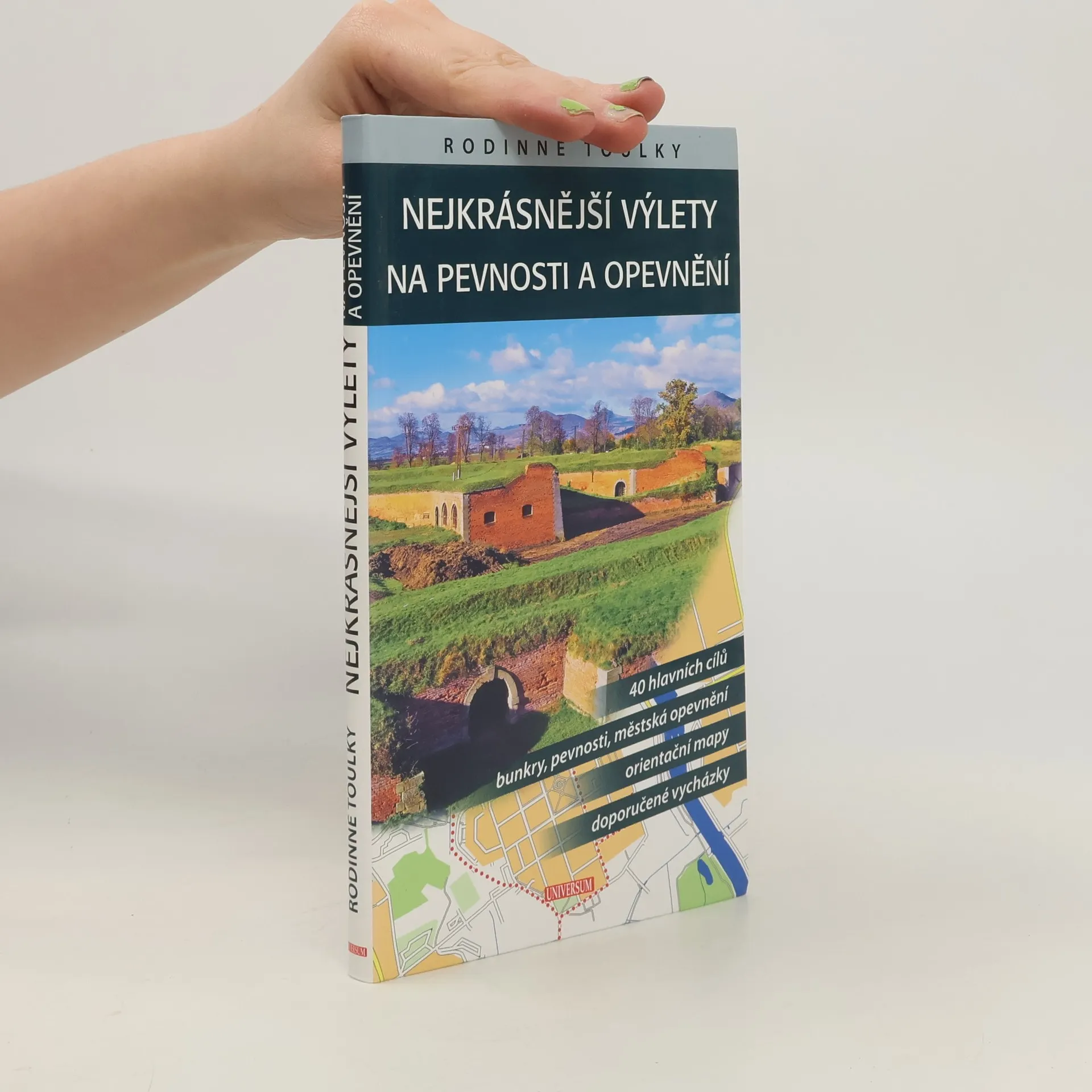 Které městské opevnění sloužilo jako vzor fortifikace pro ostatní? Kde zůstaly zachovány všechny městské brány? Na kterou pevnost, nejmodernější v Evropě, nikdy nikdo nezaútočil a proč? Který je nejkrásnější opevněný kostel v Česku? Kam se vydat na prohlídku pohraničních pevností? Jaké bylo jejich vybavení a co se z rozsáhlého systému zachovalo dodnes? Co všechno skrývá replika keltského oppida pod Troskami? Odpovědi najdete ve 40 nejkrásnějších výletech edice „Rodinné toulky“, věnovaných opevněním. Výběr je pestrý – nechybí městská opevnění, „betonová hranice z 30. let, městské pevnosti, repliky hradišť ani ukázka opevněného kostela. V každé ze čtyřiceti kapitol je návrh vycházky či výletu, řad zajímavostí a aktuální praktické informace (otevírací doba, možnosti parkování).
