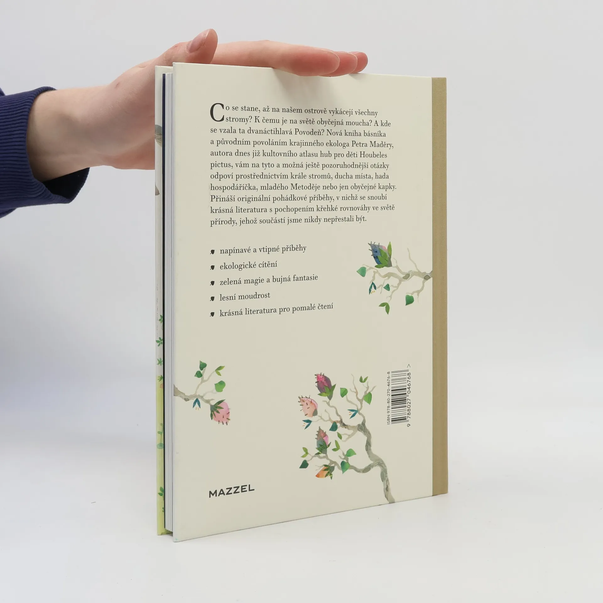 Co se stane, až na našem ostrově vykácejí všechny stromy? K čemu je na světě obyčejná moucha? A kde se vzala ta dvanáctihlavá Povodeň? Kniha básníka a původním povoláním krajinného ekologa Petra Maděry, autora dnes již kultovního atlasu hub pro děti Houbeles pictus, vám na tyto a možná ještě pozoruhodnější otázky odpoví prostřednictvím krále stromů, ducha místa, hada hospodáříčka, mladého Metoděje nebo jen obyčejné kapky. Přináší originální pohádkové příběhy, v nichž se snoubí krásná literatura s pochopením křehké rovnováhy ve světě přírody, jehož součástí jsme nikdy nepřestali být.