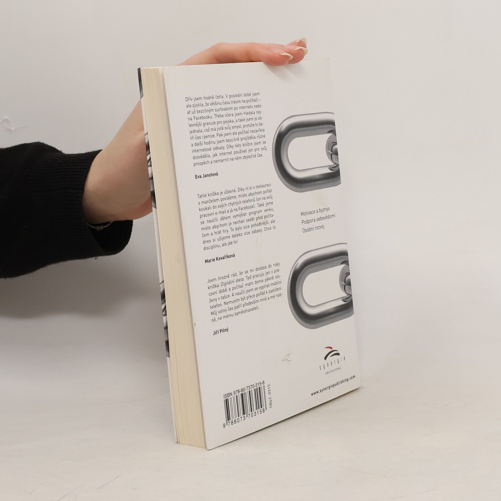 Nabízíme vám plán, jak omezit používání digitálních přístrojů, sociálních sítí i videoher, a zároveň šanci stát se zdravějšími, šťastnějšími a celistvějšími bytostmi 21. století. Ukazuje lepší způsoby, jak s technikou zacházet, a zkoumá možnosti, jak omezit každodenní používání přístrojů, k nimž patří i chytré telefony. Začneme si lépe uvědomovat, jak moderní technologie ovlivňují náš (skutečný) život a lidi v našem okolí. Kniha Digitální dieta vás povede krok za krokem – pomůže vám lépe se propojit se světem kolem sebe a lidmi, jež milujete. Jde o to být přítomen v daném okamžiku – v okamžiku, na němž záleží, a mít k dispozici nástroje, které vám umožní setrvat v tomto nastavení po celý život. Dozvíte se, jak předávkování technickými přístroji a službami škodí zdraví: fyzicky, duševně i emocionálně. Abyste mohli s těmito důsledky bojovat, představí vám mechanismy a aplikace, které dovedou pozvednout kvalitu života. Důležité je, abyste přijali to, co funguje, a zbavili se toho, co nefunguje. Představte si počítač jako skutečnou SÍLU. Stačí si uvědomit, čím moderní technologie prospívají vám i vašim rodinám, a získat nástroje, díky nimž si budete chytře vybírat a řídit oblast digitálních vstupů.