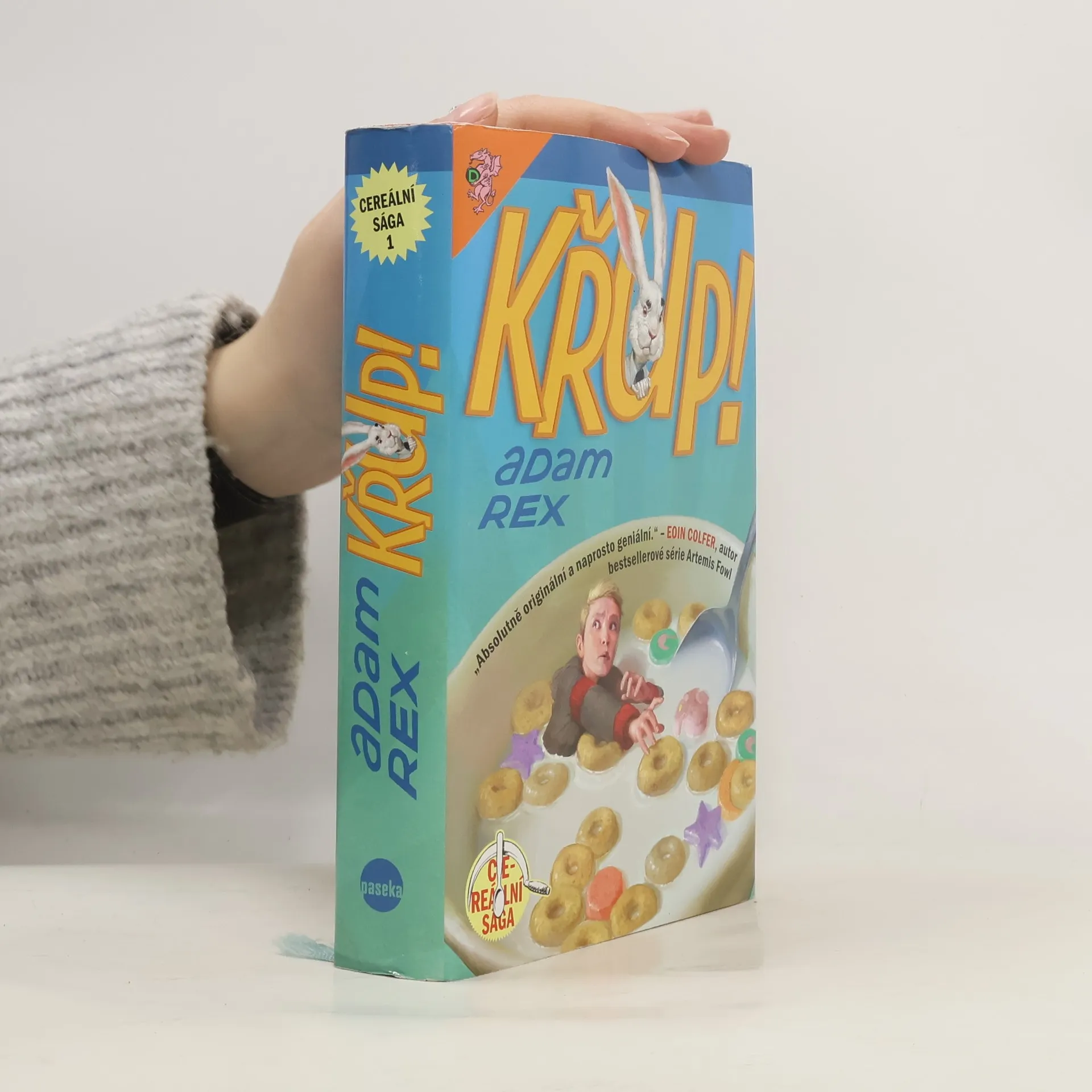 Kluk s neodpustitelně divným jménem, který trpí přeludy, geniální dvojčata se svou podezřele velkou a podezřele chlupatou "chůvou", dva tisíce let starý zlodějský skřítek a zlovolná společnost na výrobu snídaňových cereálií - to jsou základní ingredience, z nichž Adam Rex ve své sáze Křup! namíchal vskutku výživnou snídani. Do jedné misky nasypal svižné vyprávění, nápadité ilustrace, "přestávky na reklamu" i zapeklité rébusy - a vytáhl lehce ujetý příběh plný chytrého humoru, kde se moderním světem mezi lidmi prohání spousta nejrůznějších kouzelných bytostí. Toto je kniha, kterou zaručeně zhltnete na posezení, a už se vám budou sbíhat sliny na další díl. Tak dobrou chuť a ať jste v mléce vždycky křupaví!