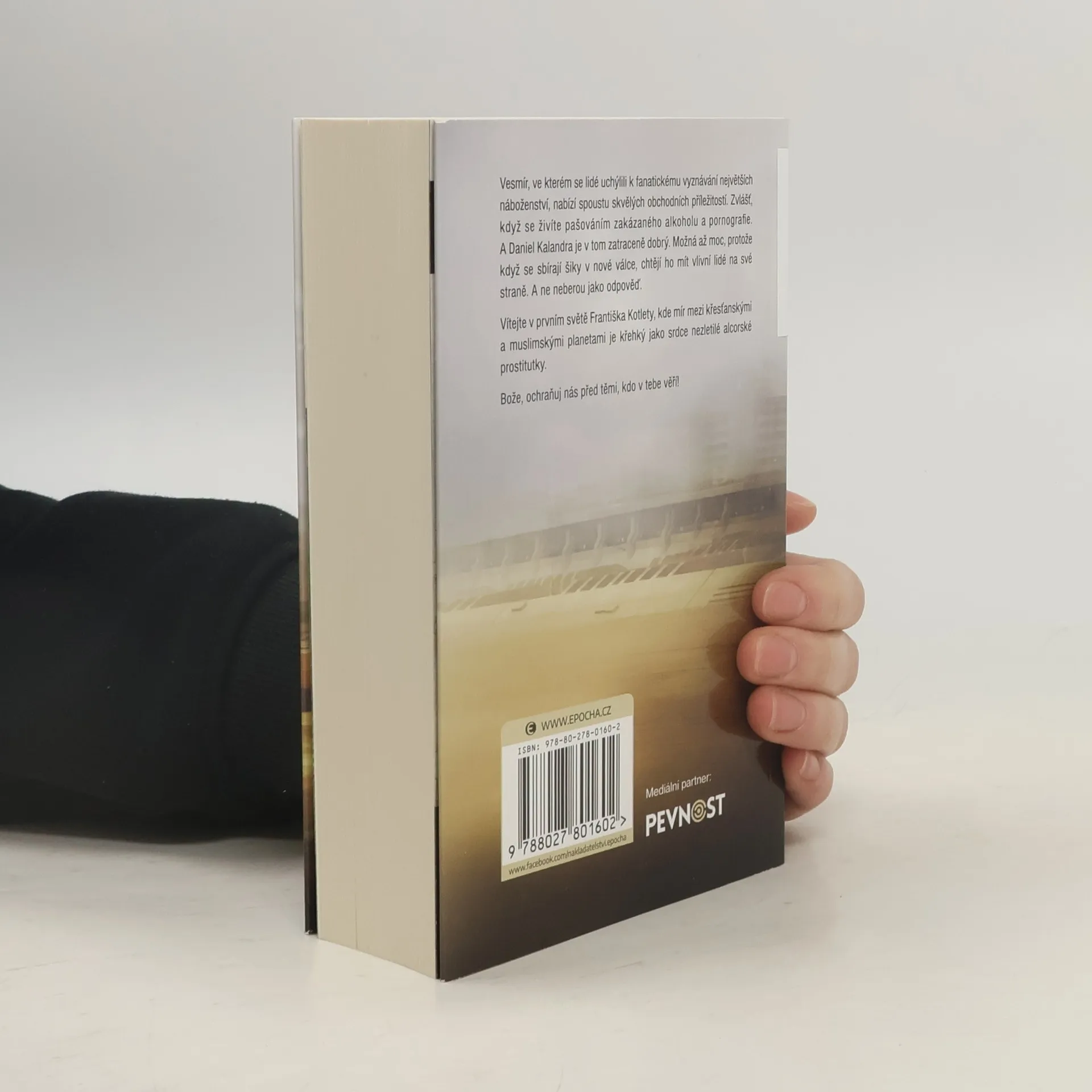 Vesmír, ve kterém se lidé uchýlili k fanatickému vyznávání největších náboženství, nabízí spoustu skvělých obchodních příležitostí. Zvlášť, když se živíte pašováním zakázaného alkoholu a pornografie. A Daniel Kalandra je v tom zatraceně dobrý. Možná až moc, protože když se sbírají šiky v nové válce, chtějí ho mít vlivní lidé na své straně. A ne neberou jako odpověď. Vítejte v prvním světě Františka Kotlety, kde mír mezi křesťanskými a muslimskými planetami je křehký jako srdce nezletilé alcorské prostitutky. Bože, ochraňuj nás před těmi, kdo v tebe věří!