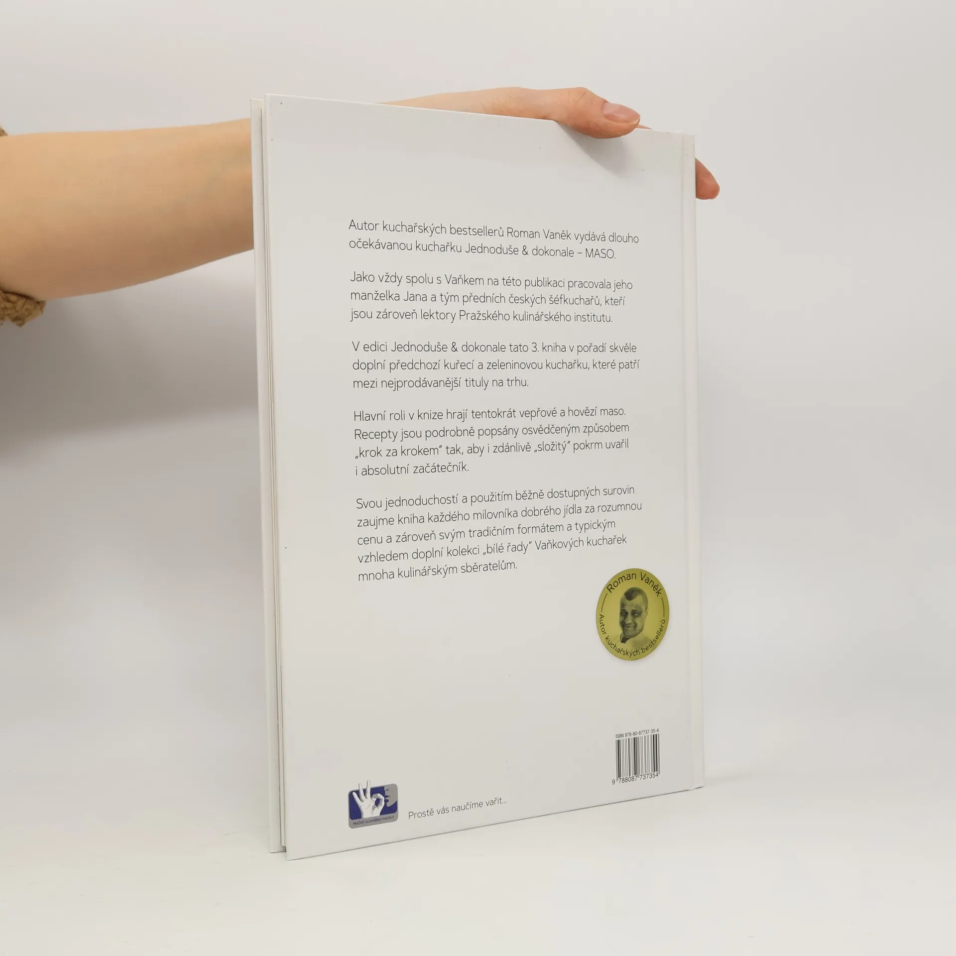 Autor kuchařských bestsellerů Roman Vaněk vydává dlouho očekávanou kuchařku Jednoduše & dokonale – MASO. Jako vždy spolu s Vaňkem na této publikaci pracovala jeho manželka Jana a tým předních českých šéfkuchařů, kteří jsou zároveň lektory Pražského kulinářského institutu. V edici Jednoduše & dokonale tato 3. kniha v pořadí skvěle doplní předchozí kuřecí a zeleninovou kuchařku, které patří mezi nejprodávanější tituly na trhu. Hlavní roli v knize hrají tentokrát vepřové a hovězí maso. Recepty jsou podrobně popsány osvědčeným způsobem „krok za krokem“ tak, aby i zdánlivě „složitý“ pokrm uvařil i absolutní začátečník. Svou jednoduchostí a použitím běžně dostupných surovin zaujme kniha každého milovníka dobrého jídla za rozumnou cenu a zároveň svým tradičním formátem a typickým vzhledem doplní kolekci „bílé řady“ Vaňkových kuchařek mnoha kulinářským sběratelům.