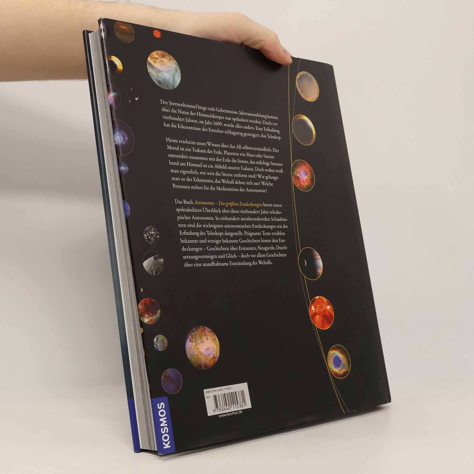 Vor 400 Jahren hat eine Erfindung die Astronomie revolutioniert: Das Teleskop. Generationen von Forschern haben damit den Nachthimmel beobachtet und durch ihre Entdeckungen das Weltbild der Menschheit geprägt. Zeit für eine Bestandsaufnahme: Was wurde entdeckt, wo hat man sich geirrt, welche Fragen sind noch offen? Dieser Bildband präsentiert die 100 wichtigsten Entdeckungen der Astronomie. Die einzigartige Kombination historischer Tatsachen und aktueller Forschungsergebnisse lässt die Geschichte der Sternenkunde Revue passieren. Und damit auch die Geschichte der Menschheit: Immer wieder erschütterten neue Erkenntnisse über das Universum unser Weltbild. Ein faszinierendes Zeitdokument des menschlichen Forscherdrangs und der atemberaubenden Erkenntnisse moderner Profi-Astronomie!