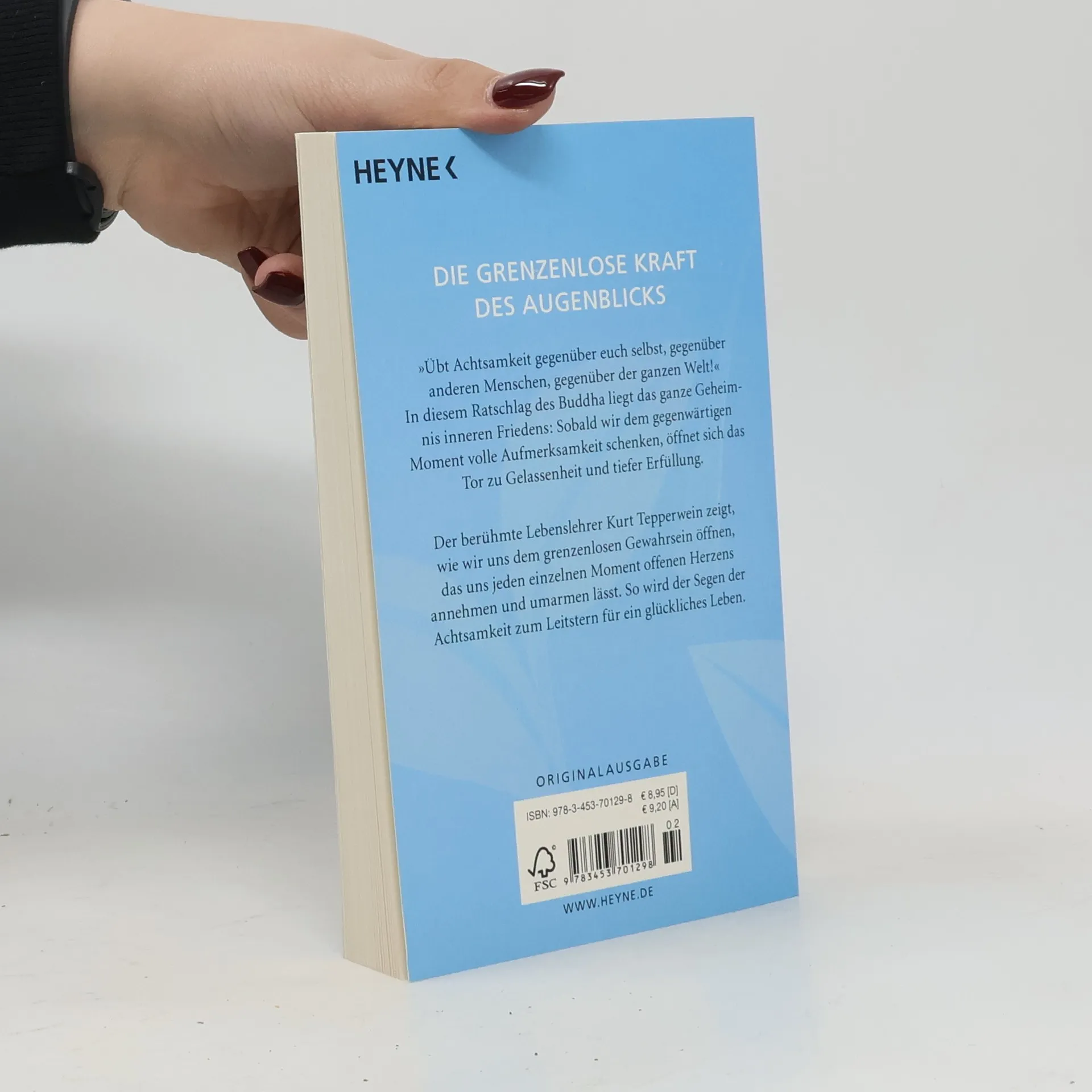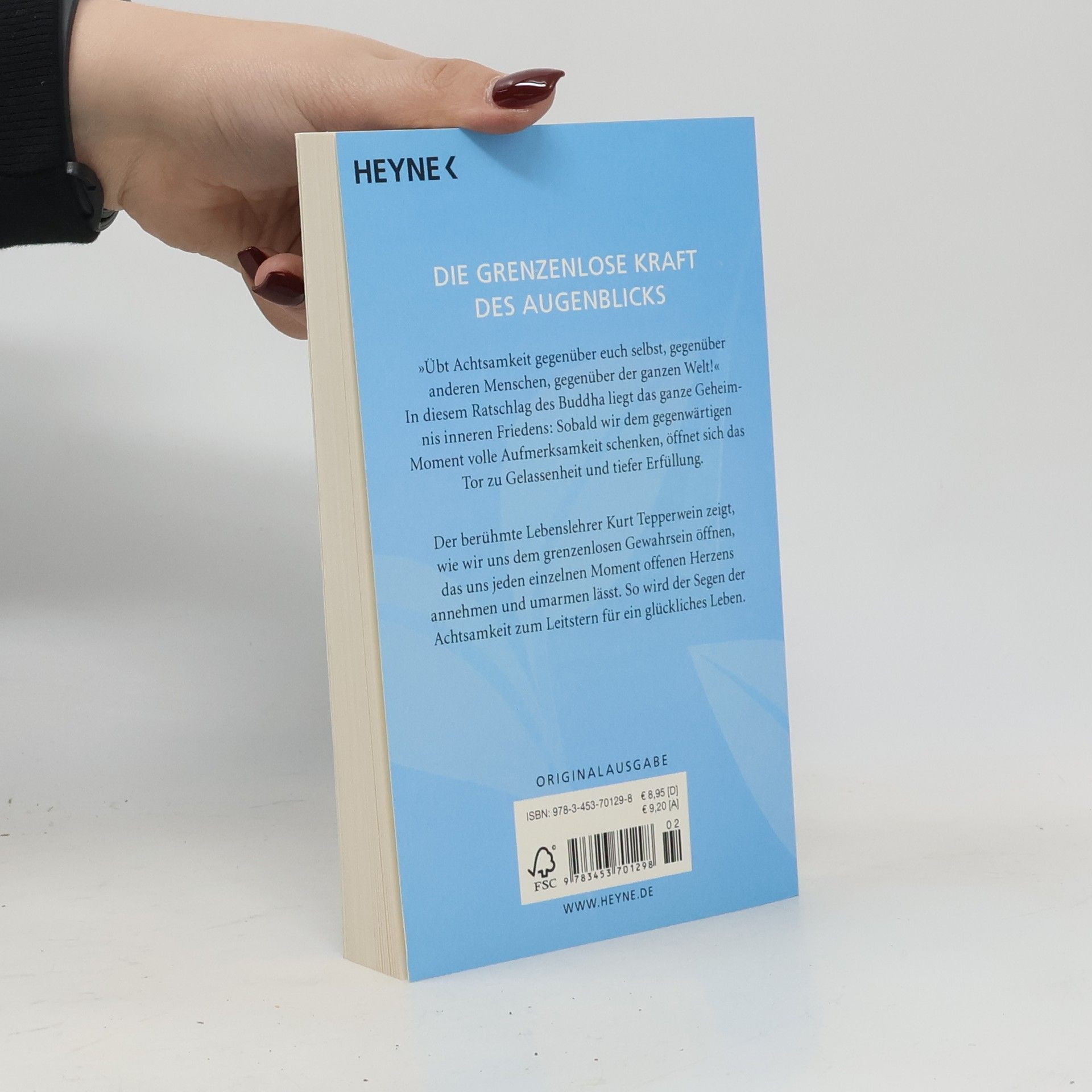 Die grenzenlose Kraft des Augenblicks 'Übt Achtsamkeit gegenüber euch selbst, gegenüber anderen Menschen, gegenüber der ganzen Welt!' In diesem Ratschlag des Buddha liegt das ganze Geheimnis inneren Friedens: Sobald wir dem gegenwärtigen Moment volle Aufmerksamkeit schenken, öffnet sich das Tor zu Gelassenheit und tiefer Erfüllung. Der berühmte Lebenslehrer Kurt Tepperwein zeigt, wie wir uns dem grenzenlosen Gewahrsein öffnen, das uns jeden einzelnen Moment offenen Herzens annehmen und umarmen lässt. So wird der Segen der Achtsamkeit zum Leitstern für ein glückliches Leben. Mit Atem- und Wahrnehmungsübungen, um die Achtsamkeit auf den gegenwärtigen Moment zu lenken.