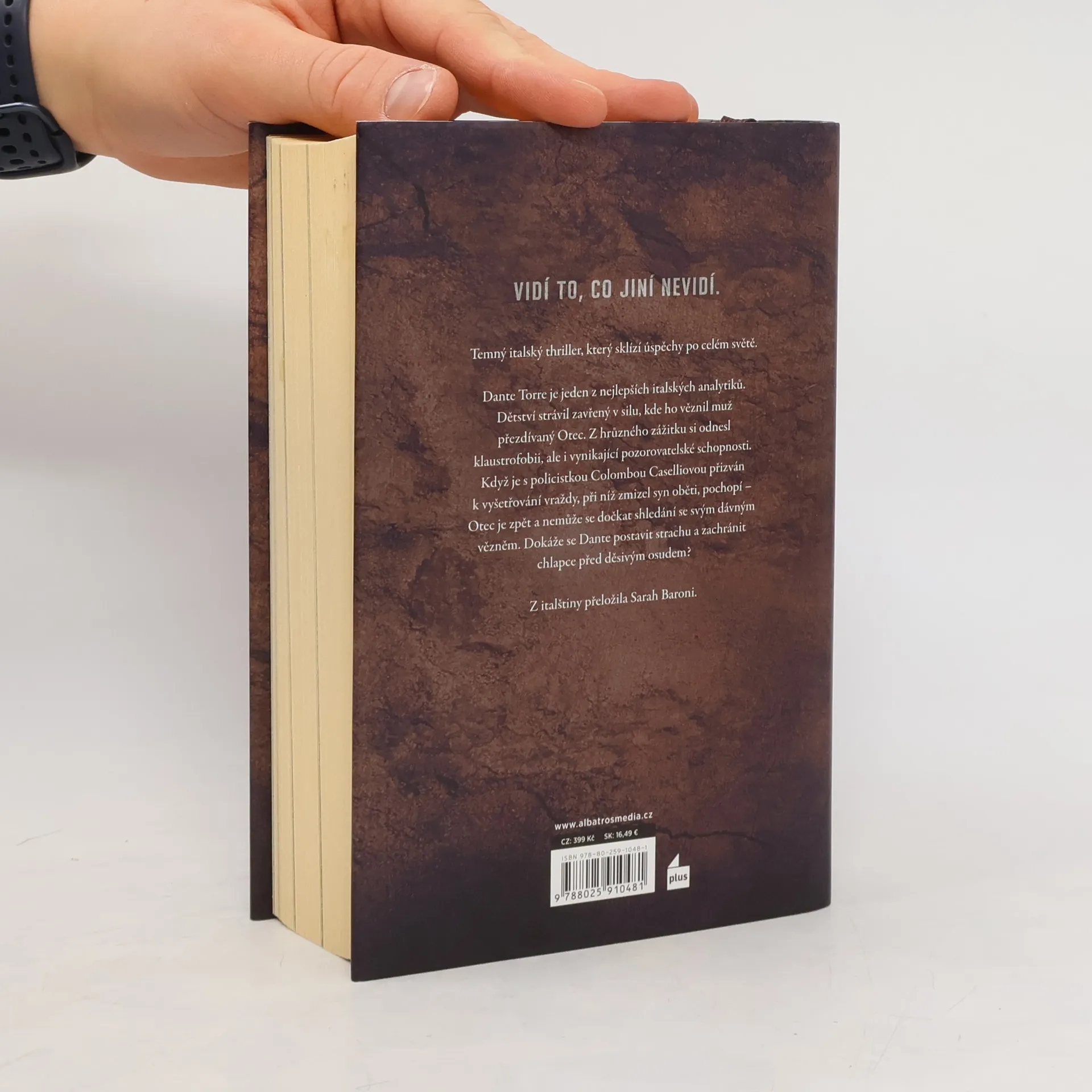 Vidí to, co jiní nevidí. Temný italský thriller, který sklízí úspěchy po celém světě. Dante Torre je jeden z nejlepších italských analytiků. Dětství strávil zavřený v silu, kde ho věznil muž přezdívaný Otec. Z hrůzného zážitku si odnesl klaustrofobii, ale i vynikající pozorovatelské schopnosti. Když je s policistkou Colombou Caselliovou přizván k vyšetřování vraždy, při níž zmizel syn oběti, pochopí – Otec je zpět a nemůže se dočkat shledání se svým dávným vězněm. Dokáže se Dante postavit strachu a zachránit chlapce před děsivým osudem?