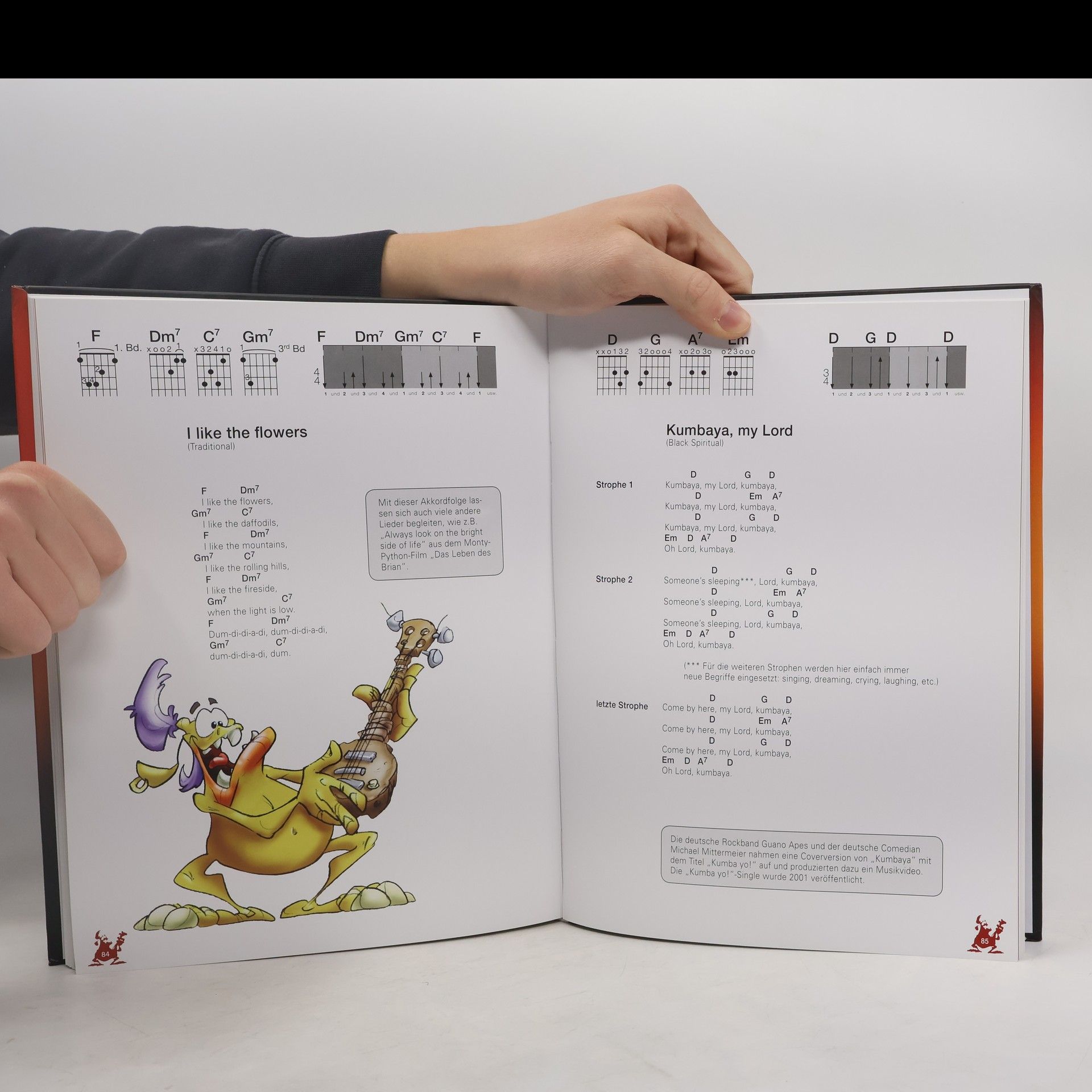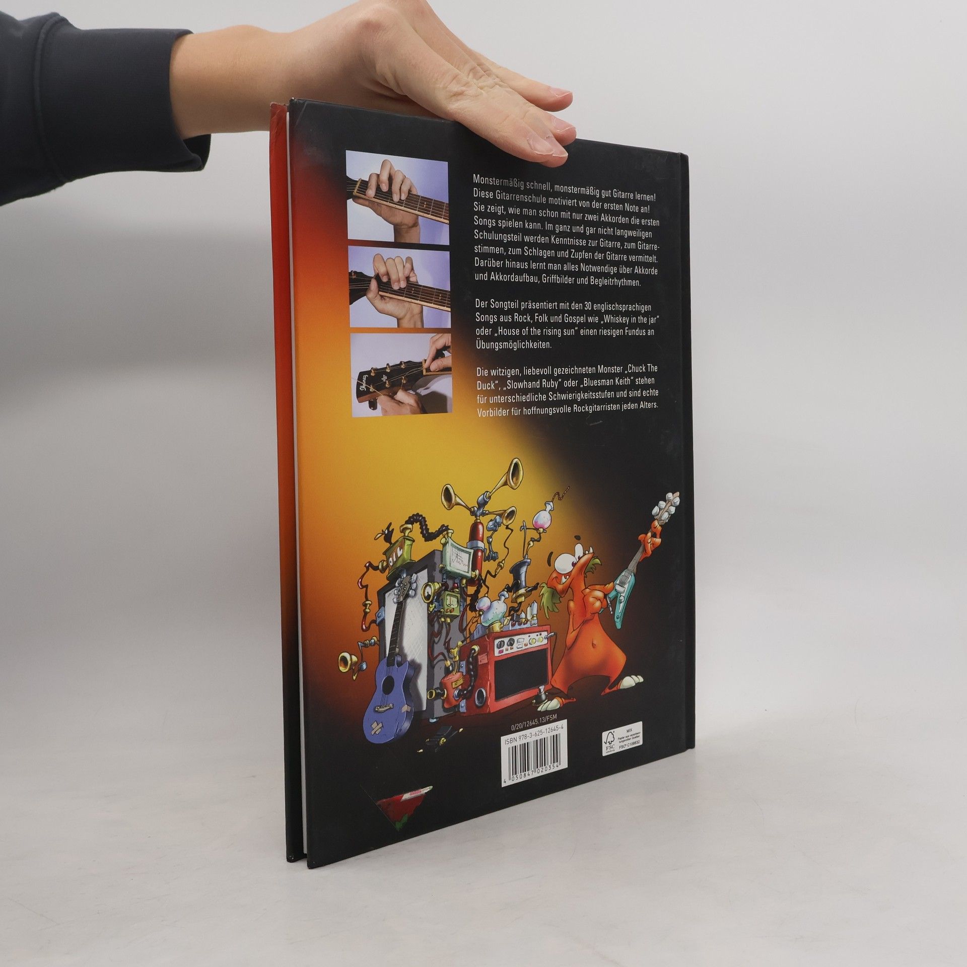 Monstermäßig schnell, monstermäßig gut Gitarre lernen! Diese Gitarrenschule motiviert von der ersten Note an und zeigt, wie man mit nur ein bis zwei Akkorden schon die ersten Songs spielen kann. In einem theoretischen Schulungsteil werden Kenntnisse zur Gitarre, zum Gitarrestimmen, zum Schlagen und Zupfen der Gitarre vermittelt. Darüber hinaus lernt man alles Notwendige über Akkorde und Akkordaufbau, Griffbilder und Begleitrhythmen. Die Kapitel sind aufsteigend nach Schwierigkeitsgrad aufgebaut und ermöglichen von Anfang an einen praxisbezogenen Umgang mit der Gitarre. Die Monster-Gitarrenschule richtet sich an hoffnungsvolle Rockgitarristen jeden Alters. • Eine besonders motivierende Gitarrenschule, die zeigt, wie man mit nur ein bis zwei Akkorden schon die ersten Songs spielen kann. • Umfangreicher Theorieteil über Gitarrenauswahl, Stimmen, Schlagen und Zupfen der Gitarre sowie alles Wissenswerte über Akkordaufbau, Griffbilder und Begleitrhythmen. • Songteil mit 30 englischsprachigen Songs aus Rock, Folk und Gospel wie „Matilda“, „Clementine“, „Down by the Riverside“. • Die witzigen, liebevoll gezeichneten Monster „Chuck The Duck“, „Slowhand Ruby“ oder „Bluesman Keith“ stehen für unterschiedliche Schwierigkeitsstufen und sind echte Vorbilder für hoffnungsvolle Rockgitarristen jeden Alters.