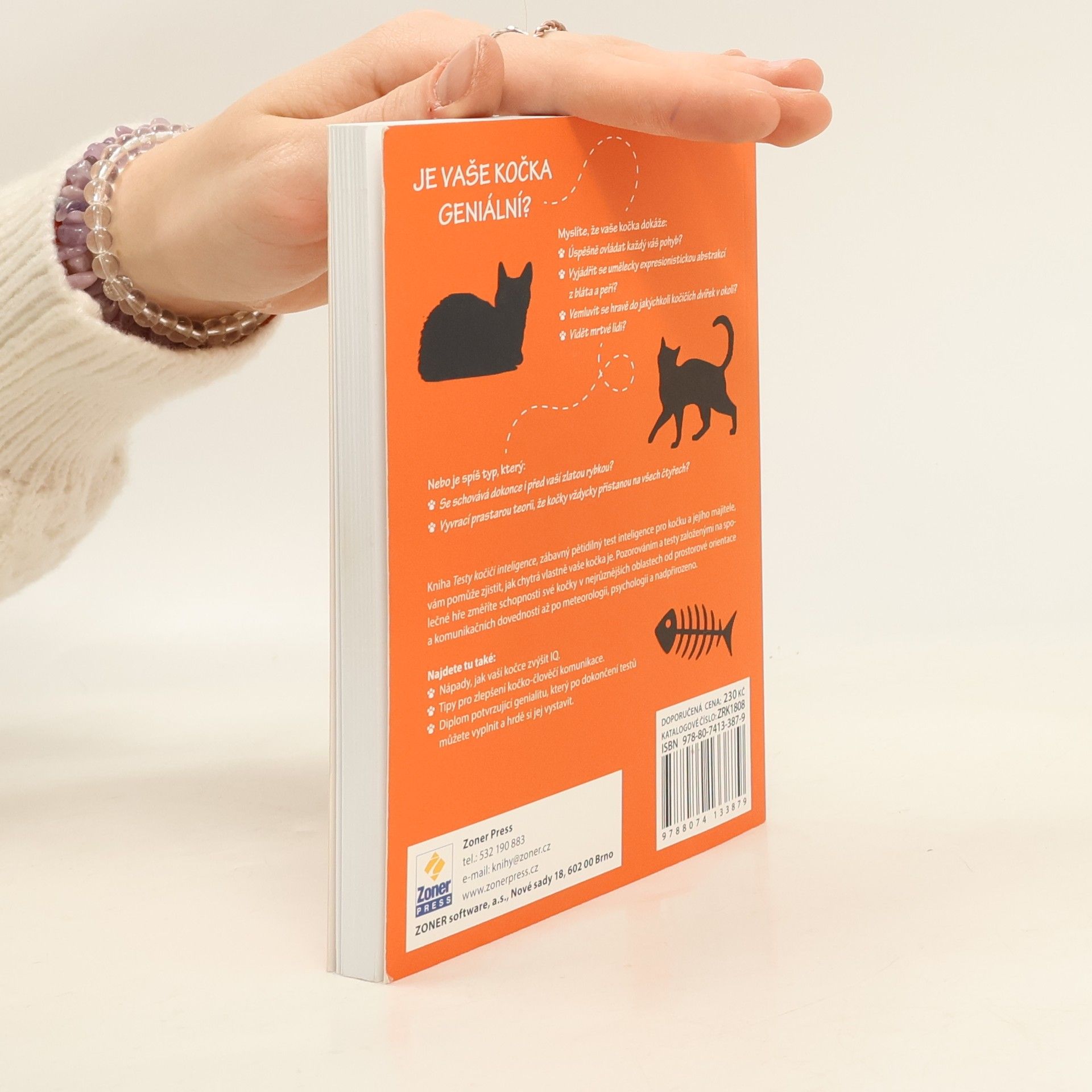Je vaše kočka geniální? Myslíte, že vaše kočka dokáže úspěšně ovládat každý váš pohyb? Vyjádřit se umělecky expresionistickou abstrakcí z bláta a peří? Vemluvit se hravě do jakýchkoli kočičích dvířek v okolí? Vidět mrtvé lidi? Nebo je spíš typ, který se schovává dokonce i před vaší zlatou rybkou či vyvrací prastarou teorii, že kočky vždycky přistanou na všech čtyřech? Kniha Testy kočičí inteligence, zábavný pětidílný test inteligence pro kočku a jejího majitele, vám pomůže zjistit, jak chytrá vlastně vaše kočka je. Pozorováním a testy založenými na společné hře změříte schopnosti své kočky v nejrůznějších oblastech od prostorové orientace a komunikačních dovedností až po meteorologii, psychologii a nadpřirozeno. Najdete tu také: Nápady, jak vaší kočce zvýšit IQ. Tipy pro zlepšení kočko-člověčí komunikace. Diplom potvrzující genialitu, který po dokončení testů můžete vyplnit a hrdě si jej vystavit.