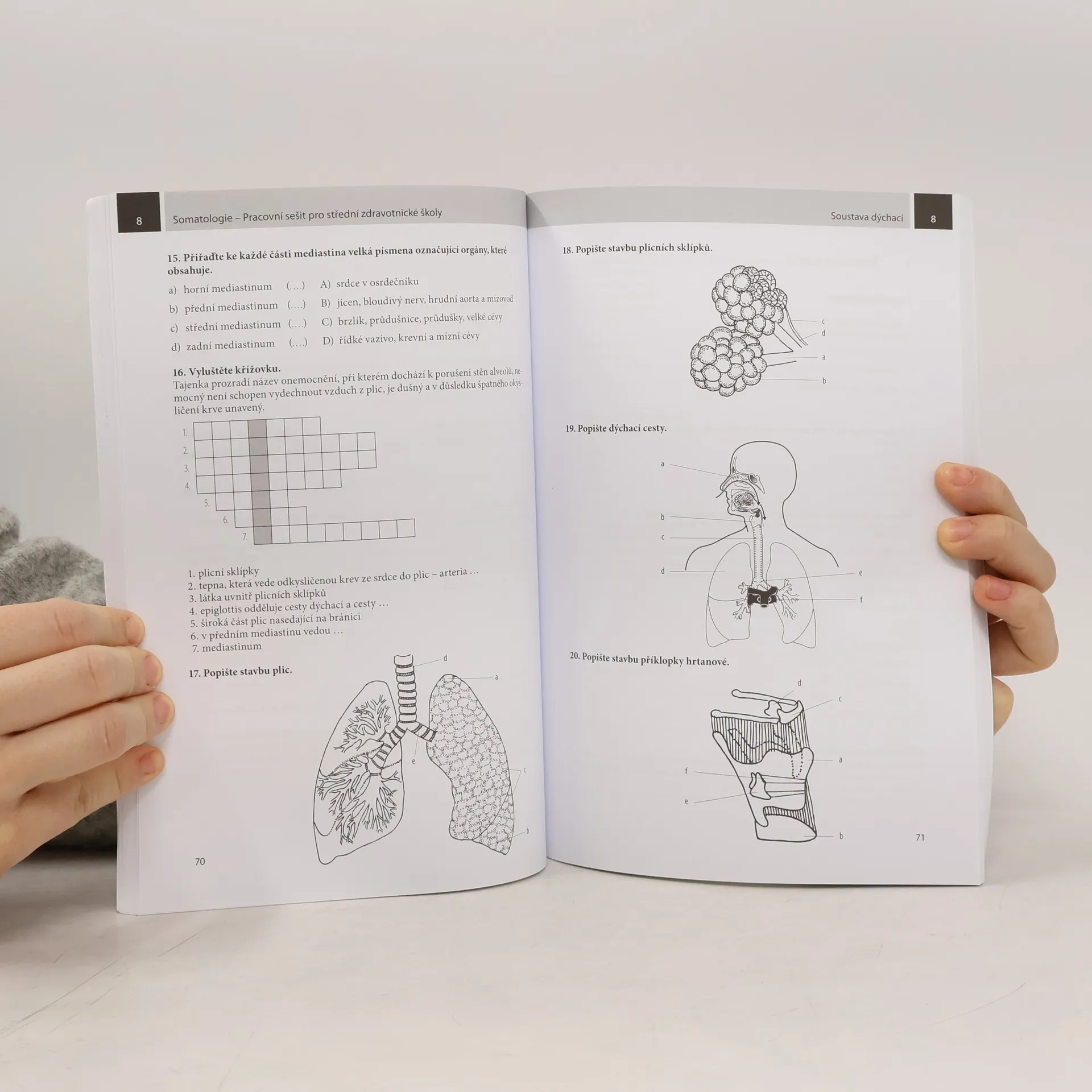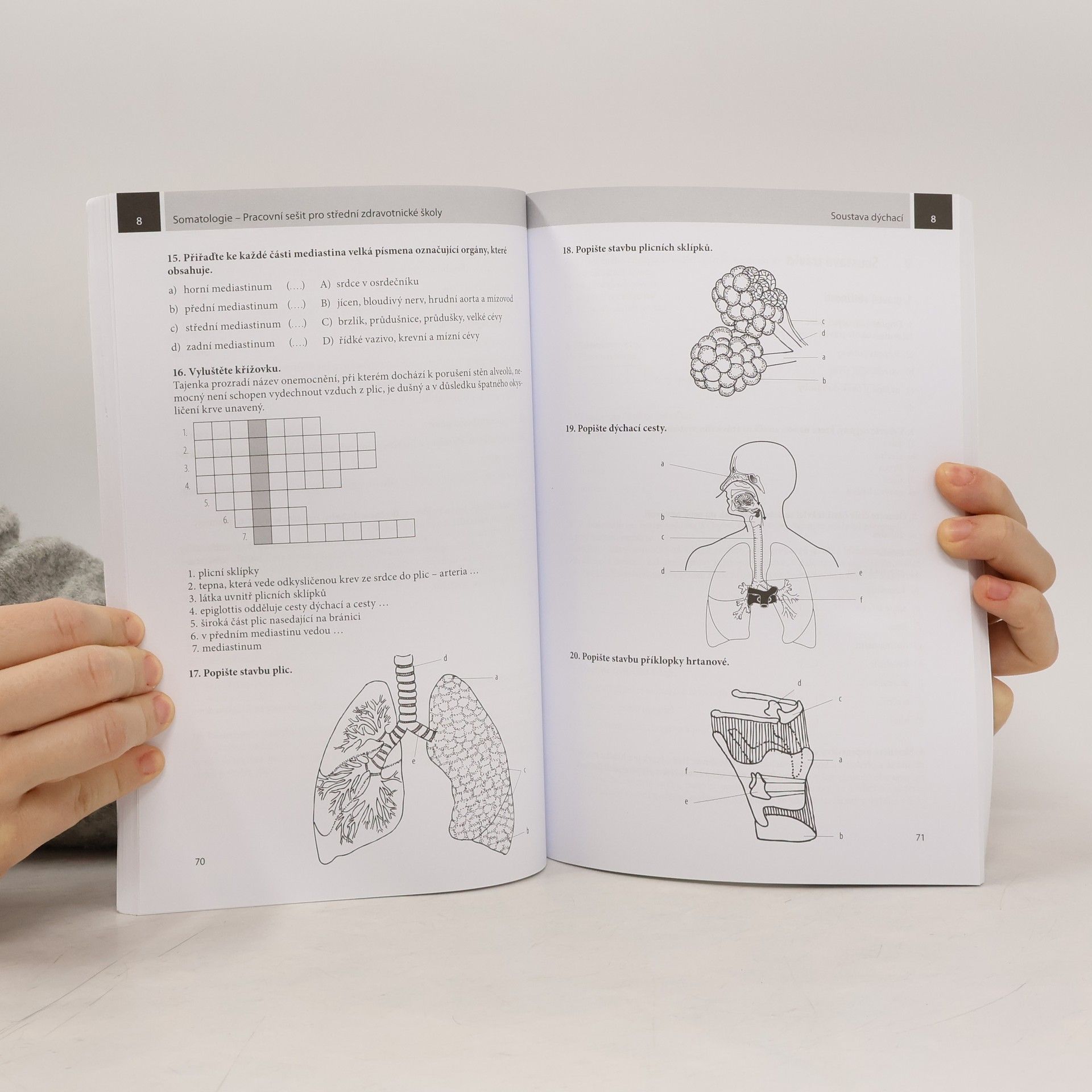Pracovní sešit pro střední zdravotnické školy. Druhé vydání pracovního sešitu navazujícího na učebnici Somatologie pro střední zdravotnické školy je určeno žákům SZŠ a zdravotnických lyceí. Slouží k procvičení, doplnění a upřesnění látky v předmětu somatologie. Ve výuce je vhodnou pomůckou při využití moderních aktivizačních výukových metod. Uplatní se také při samostudiu a ověřování znalostí, při sebereflexi pochopení probrané látky a celkovém hodnocení žáka. Využití pracovního sešitu představuje pro pedagogy zajímavou a živou formu vyučovacího procesu, kterou studenti ocení. Společně s učebnicí somatologie tvoří pracovní sešit základní učební pomůcky pro tento předmět.