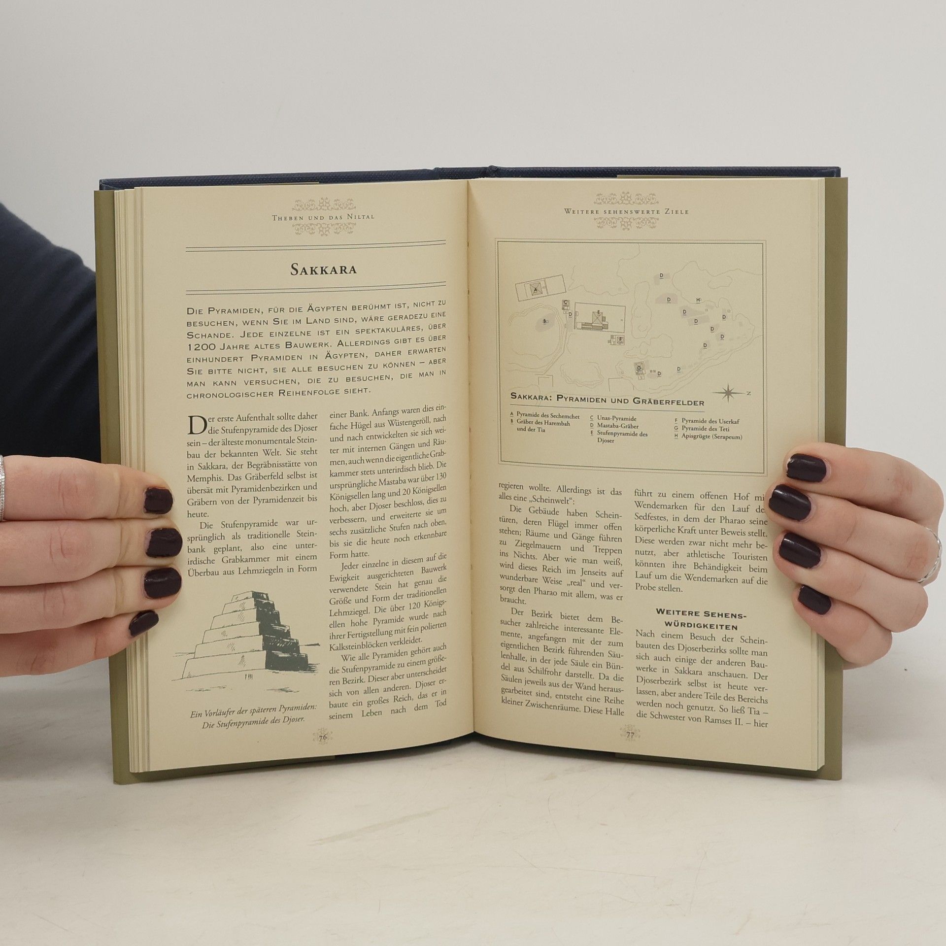 Als Tourist im Alten Ägypten Stellen Sie sich vor, Sie unternehmen eine Zeitreise und haben die Möglichkeit, die antike Welt zu erkunden, antike Wunderwerke in ihrem Originalzustand zu bestaunen und mit Zeitgenossen zu sprechen, die sie erschaffen haben! Dieser außergewöhnlich liebevoll gestaltete Reiseführer in das Alte Ägypten bietet alles, was man als heutiger Tourist beim Kauf eines modernen Reiseführers erwartet. Von Beginn an bekommt der Leser das Gefühl, selbst im Jahr 1200 v. Chr. zu leben und als Feriengast das Land am Nil zu entdecken. Er findet sich mitten im Alltag der Metropole Theben wieder und erhält nützliche Tipps zu Anreise, Unterkunft, Küche oder Einkaufsmöglichkeiten. Daneben erfährt er vieles zu Geschichte, Kultur und zur politischen Situation im Reiseziel, bevor er im Hauptteil des Reiseführers verschiedene Sehenswürdigkeiten rund um Theben und das Niltal entdecken kann. Mithilfe von Karten, Grundrissen und Zeichnungen werden die Highlights vorgestellt, kurze Infokästen bieten weitere Hintergrundinformationen oder bergen Geheimtipps, die das Reisen für den Leser zum Erlebnis werden lassen.