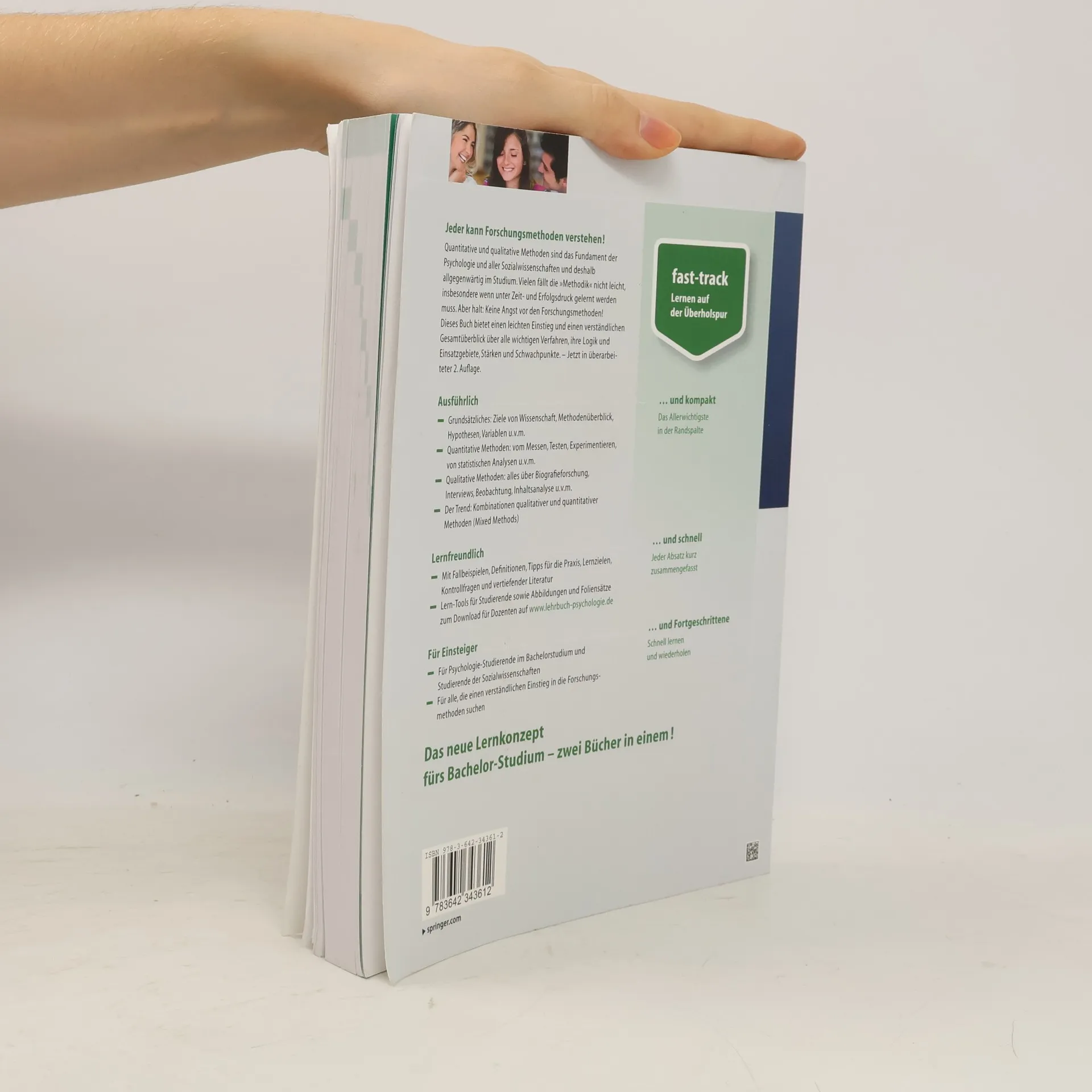 Quantitative und qualitative Methoden sind das Fundament aller Sozialwissenschaften und deshalb allgegenwärtig im Studium. Vielen fällt die »Methodik« nicht leicht, insbesondere wenn unter Zeit- und Erfolgsdruck gelernt werden muss. Aber halt: Jeder kann die Forschungsmethoden verstehen! Dieses Buch bietet einen leichten Einstieg und einen verständlichen Gesamtüberblick über alle wichtigen Verfahren, ihre Einsatzgebiete, Stärken und Schwachpunkte. Das Buch ist gleichzeitig kompakt und doch vollständig: Neben grundlegenden Informationen zu wissenschaftlichem Arbeiten, Hypothesen, Variablen u.v.m. werden ausführlich die wichtigsten quantitativen und qualitativen Methoden beschrieben und - dem aktuellen Trend folgend – Kombinationen aus beiden, die sog. Mixed Methods. Die zweite Auflage wurde aktualisiert und um einige neue Aspekte ergänzt, z.B. Datenerhebung im Internet oder neurowissenschaftliche Methoden. Alles ist lernfreundlich aufbereitet: Mit Fallbeispielen, Definitionen, Tipps für die Praxis, Lernzielen, Kontrollfragen und vertiefender Literatur. Auf der begleitenden Website auf www.lehrbuch-psychologie.de finden sich kostenlose Lern-Tools für Studierende sowie Abbildungen und Foliensätze zum Download für Dozenten. Für Studierende der Psychologie und Sozialwissenschaften sowie für alle, die einen verständlichen Einstieg in die Forschungsmethoden suchen.