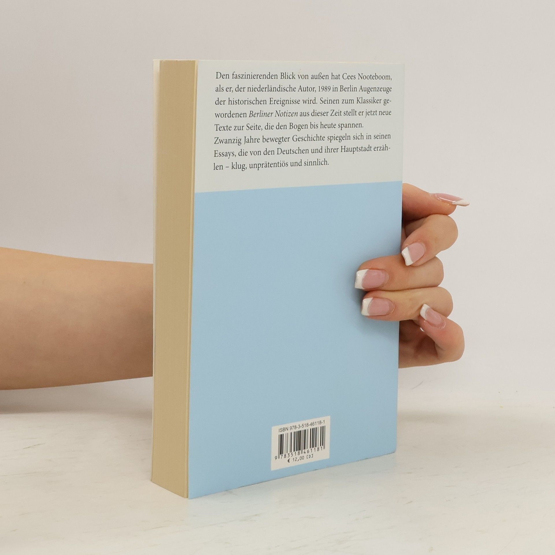 Als Außenstehender und anteilnehmender Augenzeuge zugleich erlebt Cees Nooteboom das Jahr 1989 in Berlin. Ende der Neunziger besucht der Autor erneut die nun nicht mehr geteilte Stadt. Und zehn Jahre später inspiziert er die Berliner Verhältnisse ein weiteres Mal. Der Mauerfall, die neunziger Jahre, das heutige Berlin: Der große niederländische Erzähler und Essayist Cees Nooteboom stellt seinen zum Klassiker gewordenen Berliner Notizen und der Rückkehr nach Berlin neue, bisher unveröffentlichte Texte zur Seite. Zwanzig Jahre bewegter Geschichte spiegeln sich in dieser Zusammenstellung von Essays, die von den Deutschen und ihrer Hauptstadt erzählen, klug, unprätentiös und sinnlich.