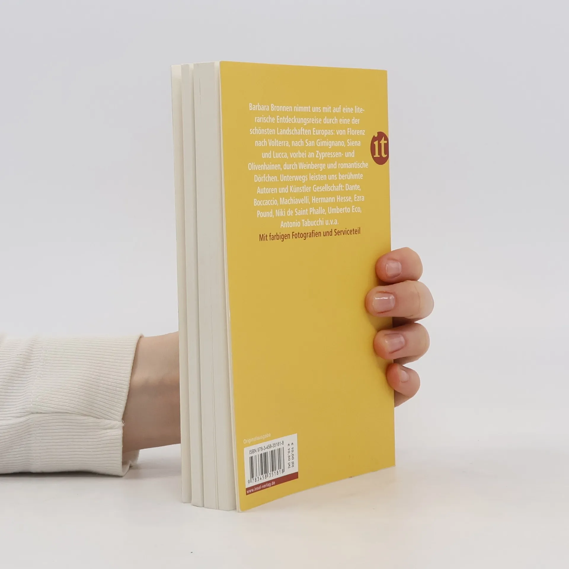 Barbara Bronnen nimmt uns mit auf eine literarische Entdeckungsreise durch eine der schönsten Landschaften Europas. Die Toskana ist der Schriftstellerin seit vielen Jahren zur zweiten Heimat geworden: Sie liebt das Land und seine Bewohner und ist eine intime Kennerin seiner Kultur und Literatur. Die Reise führt uns von Florenz nach Volterra, nach San Gimignano, Siena und Lucca, vorbei an Zypressen- und Olivenhainen, durch Weinberge und romantische Dörfchen. Unterwegs leisten uns berühmte Autoren und Künstler aus allen Epochen Gesellschaft: Dante, Boccaccio, Machiavelli, Heinrich Heine, Hermann Hesse, Ezra Pound, Niki de Saint Phalle, Umberto Eco, Antonio Tabucchi u. v. a.