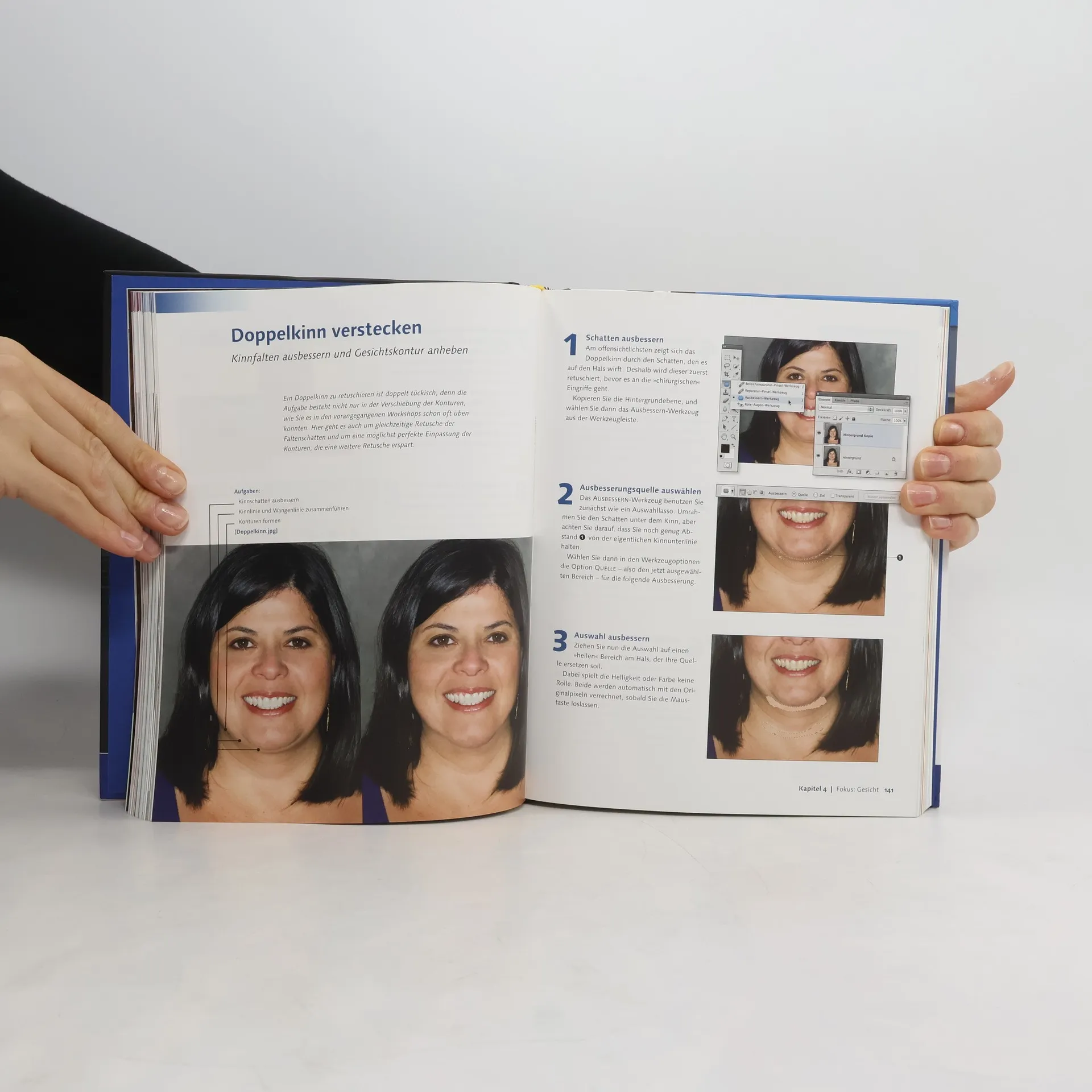 Dieses Buch ist der Intensivkurs für die Bearbeitung von People-Fotos und Porträts in Photoshop! Lernen Sie an vielen kleinen Praxisbeispielen Schritt für Schritt die grundlegenden Techniken der Porträtretusche kennen: Retuschieren Sie Hautpartien, um Unreinheiten, Falten, Blitzflecken und andere Störungen zu kaschieren. Färben und formen Sie Haare und stellen Sie sie frei. Modellieren Sie Körper- und Gesichtspartien, und korrigieren Sie Mimik und Haltung. Setzen Sie anschließend die erlernten Techniken an realen Projekten aus der Praxis eines Porträtfotografen um: Sie versetzen ein Modell in einen Titelblatt-Look, lassen Gesichter verjüngen und älter werden, führen komplexe Belichtungs- und Farbkorrekturen durch, und Sie bearbeiten Hochzeitsfotos, Beautyporträts und Sportaufnahmen. Zum guten Schluss geben Sie Ihren Bilder den richtigen Feinschliff, von der angepassten Schärfung bis zum ganz eigenen Look