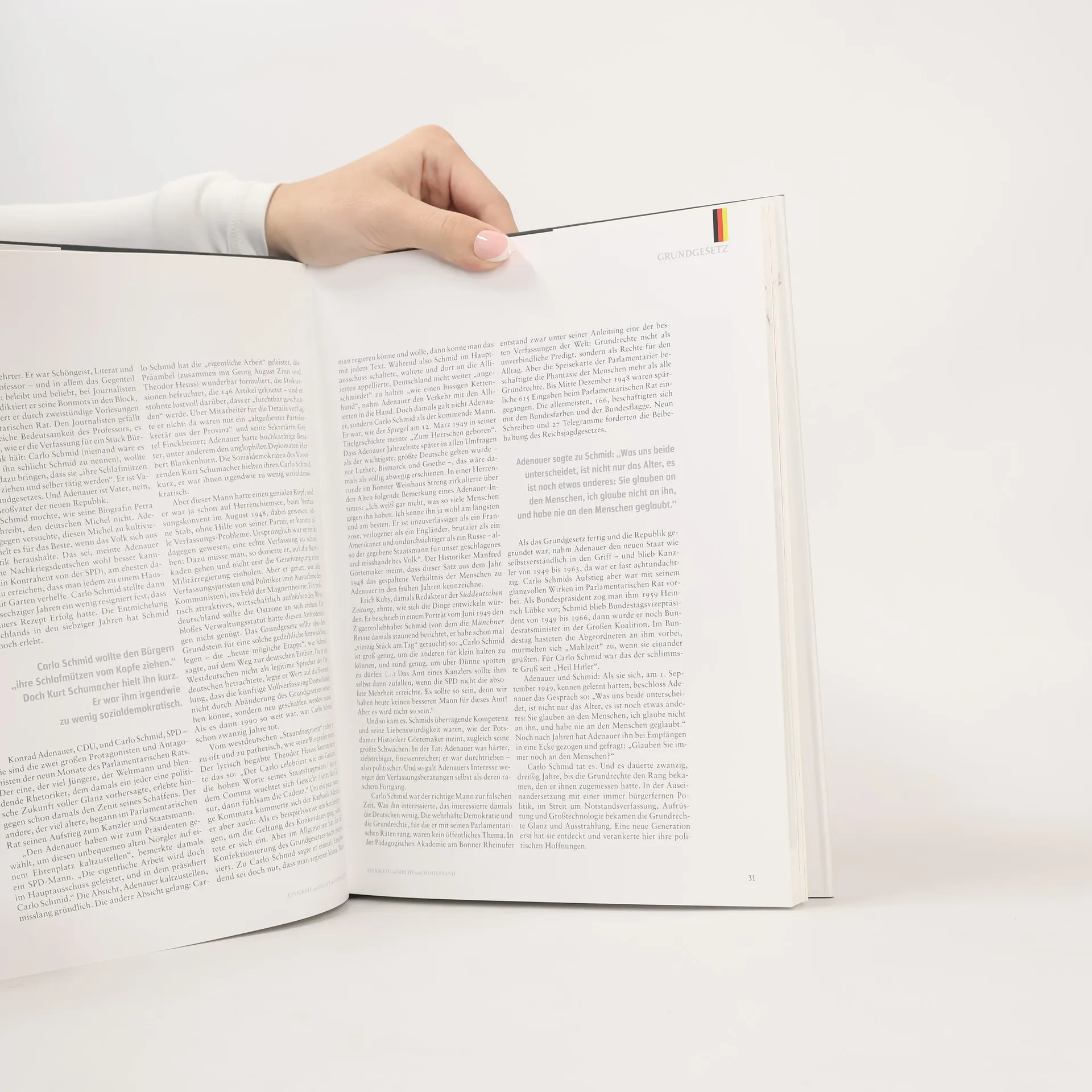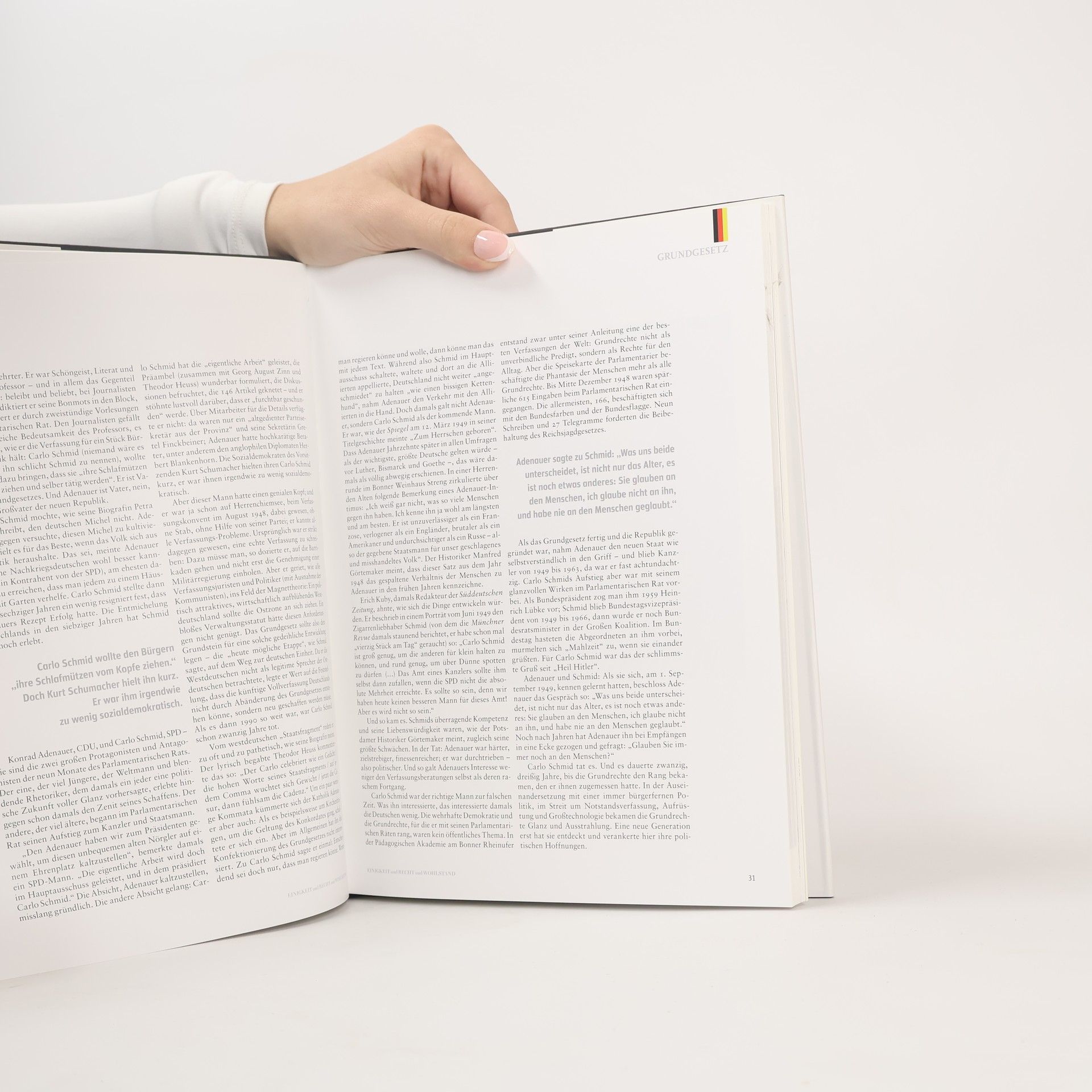 Kanzler Ludwig Erhard stößt in einem Bergwerk mit den Kumpels auf das Wirtschaftswunder an, Kardinal Julius Döpfner feiert seine Inthronisation in München, Arbeiter markieren mit Holzpfosten die spätere deutsch-deutsche Grenze, Atomkraftgegner protestieren in Wyhl – anhand von solchen prägnanten, aber wenig bekannten Bildern und ihrer Geschichte erzählt „Einigkeit und Recht und Wohlstand“ vom Werdegang der Bundesrepublik. Das Buch, basierend auf einer Serie der Süddeutschen Zeitung und geschrieben von SZ-Autoren, lässt die politischen und gesellschaftlichen Entwicklungen der letzten 60 Jahre in Reportagen, Analysen und Essays Revue passieren. Zahlreiche politische SZ-Karikaturen aus den vergangenen Jahrzehnten ergänzen den Band.