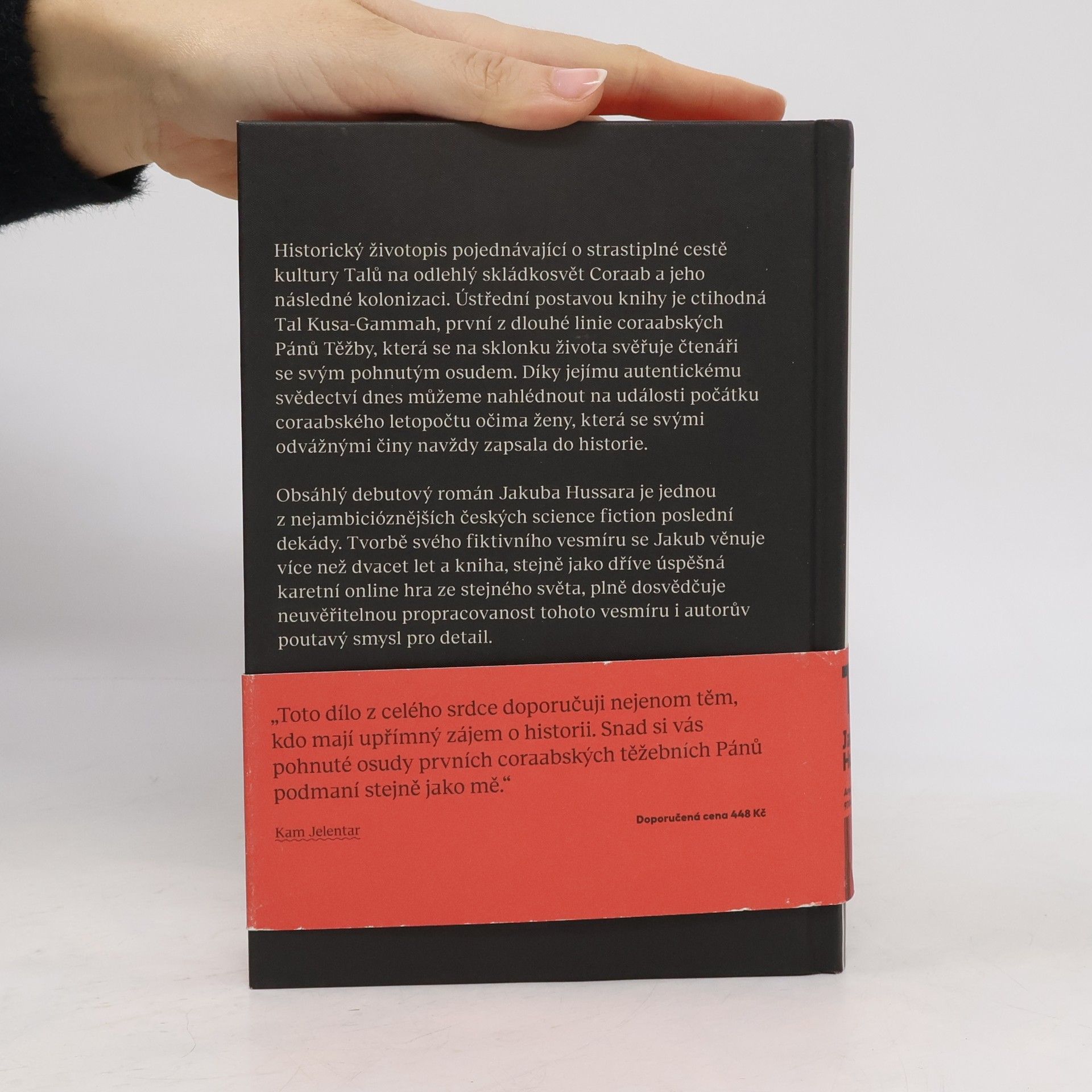 Obsáhlý debutový román Jakuba Hussara je jednou z nejambicióznějších českých science fiction poslední dekády. Tvorbě svého fiktivního vesmíru se Jakub věnuje více než dvacet let a kniha, stejně jako dříve úspěšná karetní online hra ze stejného světa, plně dosvědčuje neuvěřitelnou propracovanost tohoto vesmíru i autorův poutavý smysl pro detail. Historický životopis pojednávající o strastiplné cestě kultury Talů na odlehlý skládkosvět Coraab a jeho následné kolonizaci. Ústřední postavou knihy je ctihodná Tal Kusa-Gammah, první z dlouhé linie coraabských Pánů Těžby, která se na sklonku života svěřuje čtenáři se svým pohnutým osudem. Díky jejímu autentickému svědectví dnes můžeme nahlédnout na události počátku coraabského letopočtu očima ženy, která se svými odvážnými činy navždy zapsala do historie.