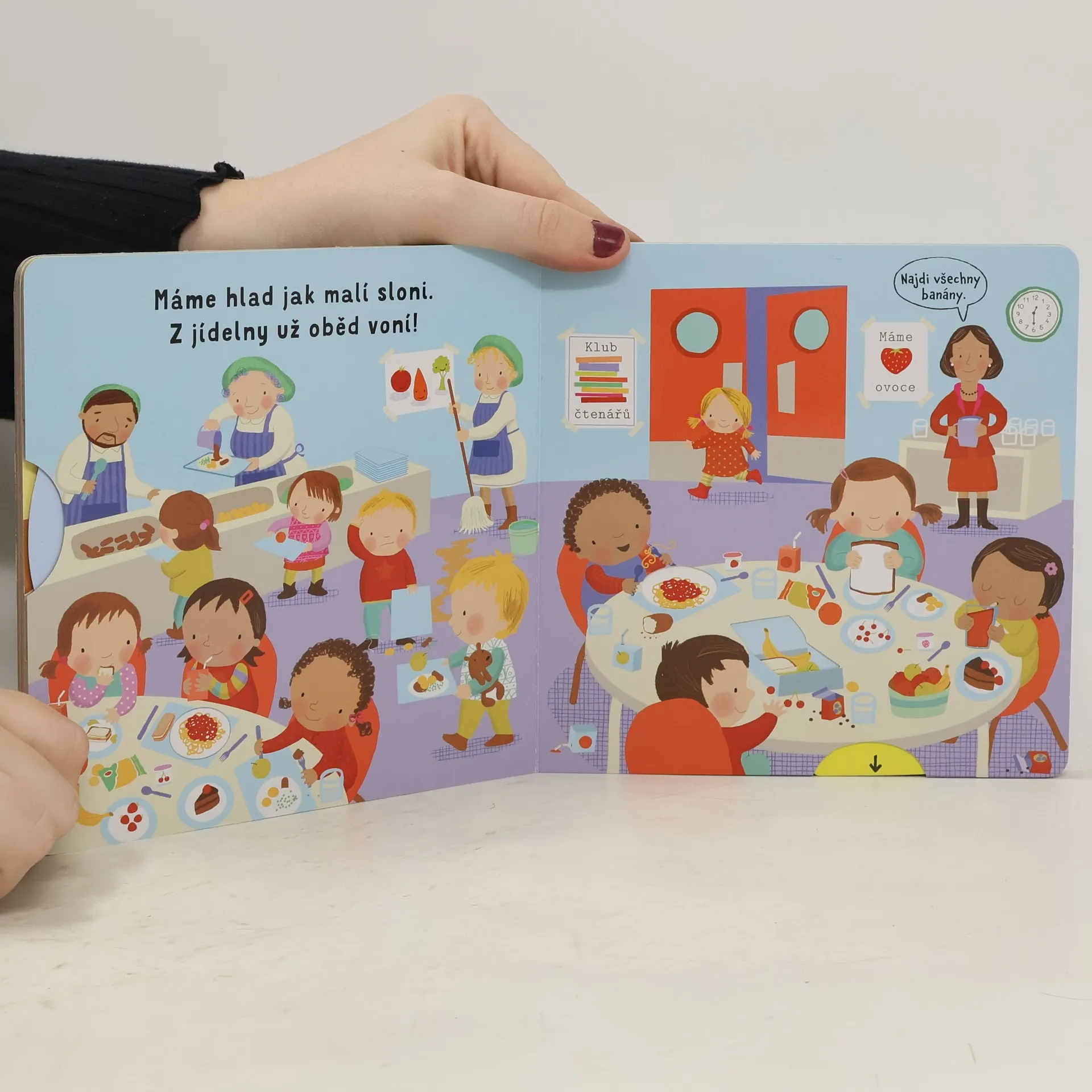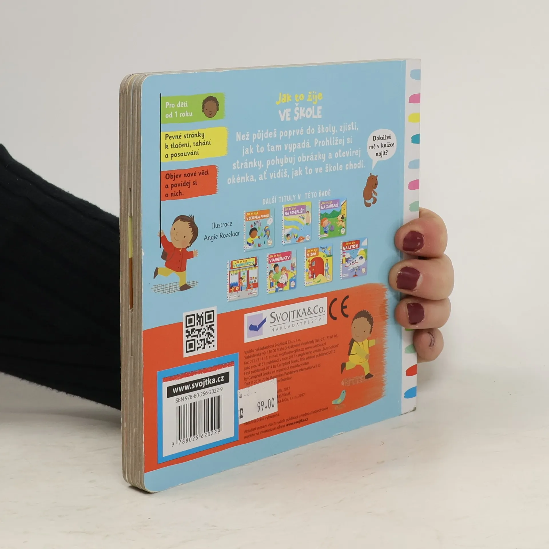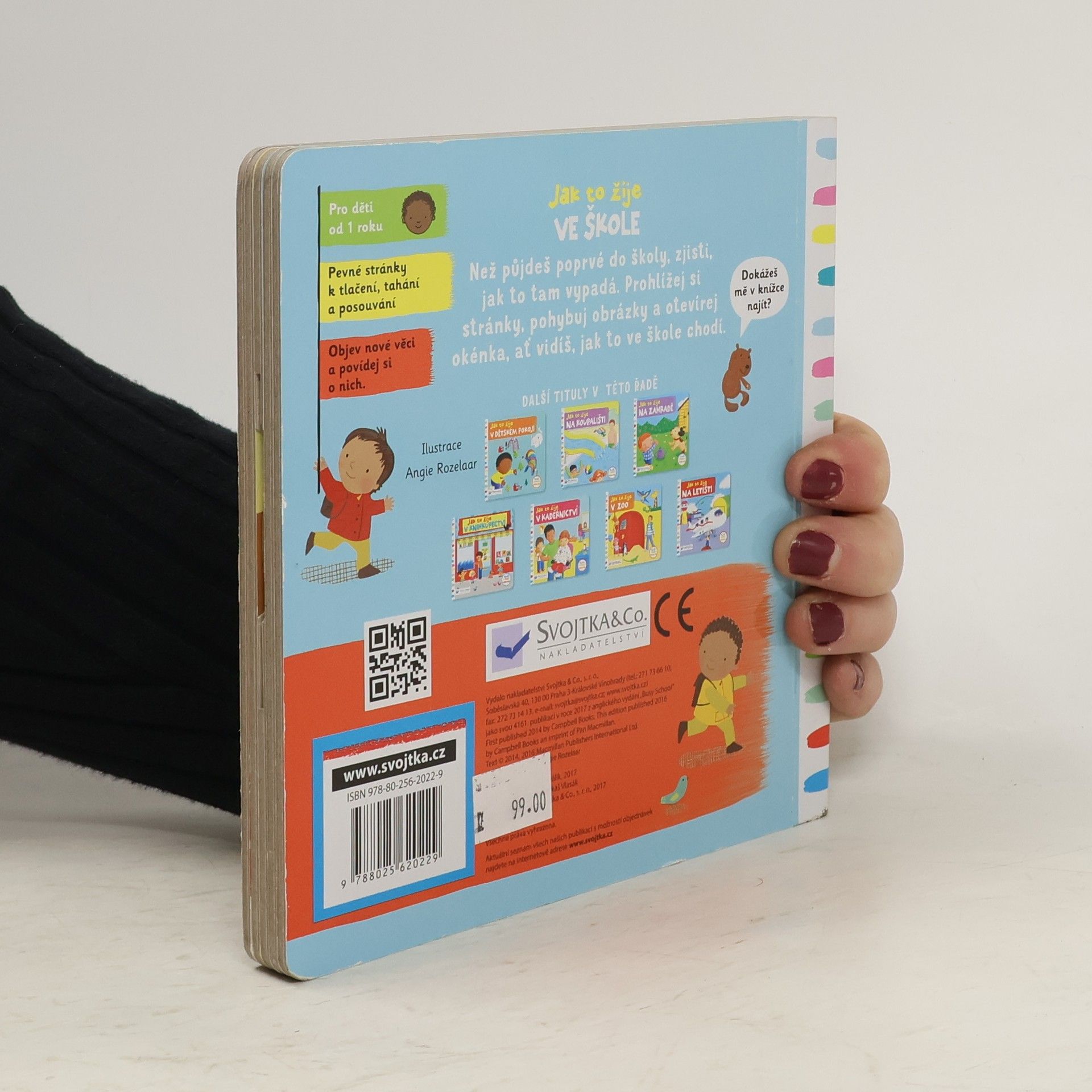 Ve škole čeká spousta překvapení. Otevři knížku a podívej se! Před školou se všichni honí. Ještě chvilku – potom zvoní! Podívej, co všechno na děti ve škole čeká! Toto dětské leporelo je určeno pro děti od jednoho roku. Má pevné stránky s posuvnými a otočnými prvky, a tak si dítě při prohlížení knížky současně procvičí jemnou motoriku – může na jednotlivých stránkách posouvat, tahat, otáčet. Objeví nové věci a můžete si o nich společně povídat! Tak honem, ve třídě čeká spousta překvapení.