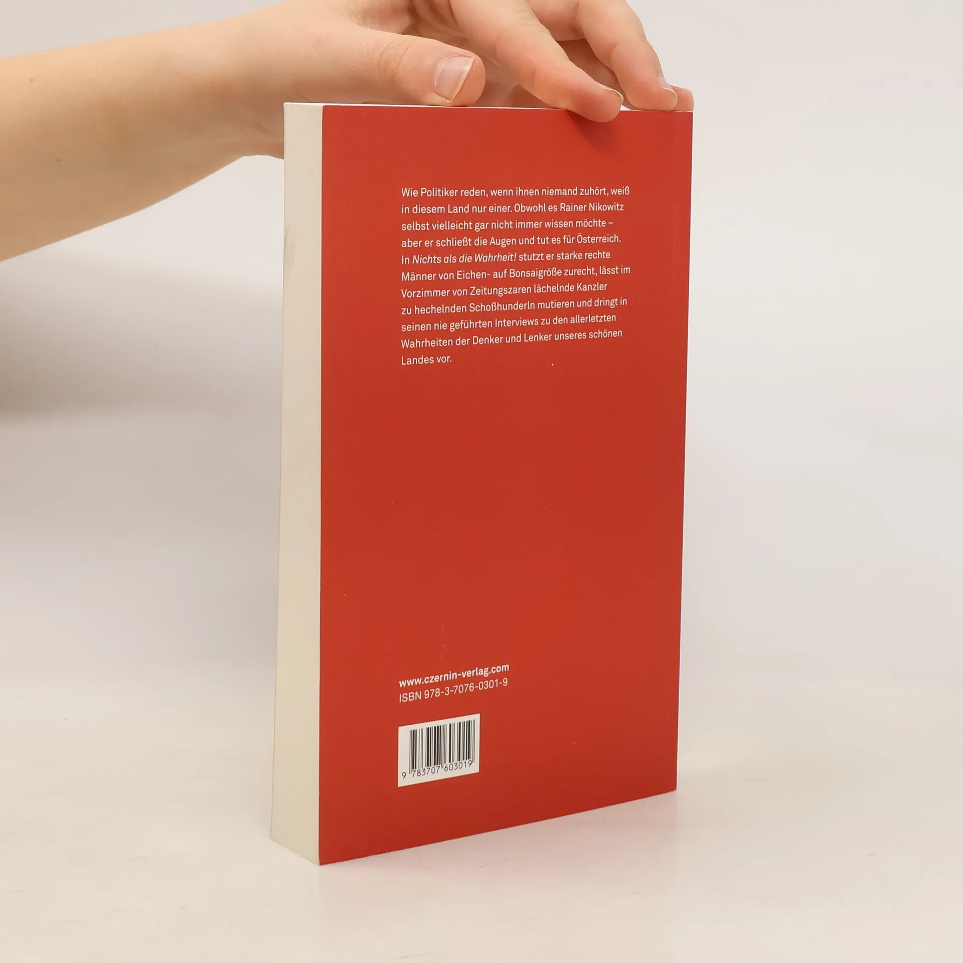 Pointiert und gnadenlos witzig bringt Rainer Nikowitz seine Leser Woche für Woche auf einer der letzten Seiten der österreichischen Wochenzeitschrift profil zum Lachen. Wie Statler und Waldorf aus der Muppet Show kommentiert er den Wahnwitz der aktuellen Geschehnisse, die der Leser vorher seitenweise präsentiert bekommen hat. Nichts als die Wahrheit! versammelt einen Großteil der bisher erschienen Kolumnen dieser österreichischen Satireinstitution. Wie Politiker reden, wenn ihnen niemand zuhört, weiß in diesem Land nur einer. Obwohl es Rainer Nikowitz selbst vielleicht gar nicht immer wissen möchte – aber er schließt die Augen und tut es für Österreich. In Nichts als die Wahrheit! stutzt er starke rechte Männer von Eichen- auf Bonsaigröße zurecht, lässt im Vorzimmer von Zeitungszaren lächelnde Kanzler zu hechelnden Schoßhunderln mutieren und dringt in seinen nie geführten Interviews zu den allerletzten Wahrheiten der Denker und Lenker unseres schönen Landes vor.