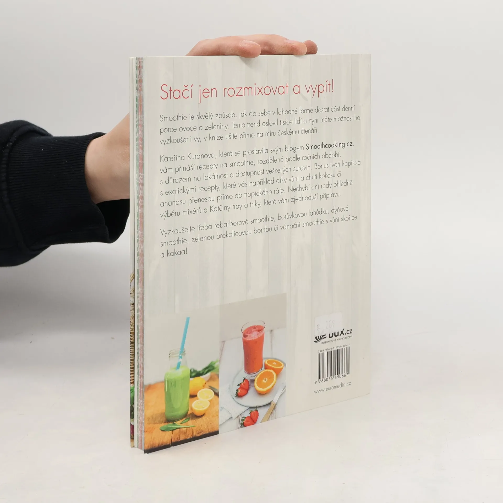 Kniha známé české foodblogerky Kateřiny Kuranovy z blogu Smoothcooking.cz ukazuje, jak si jednoduše připravit smoothie se sezónních, snadno dostupných a lokálních surovin. Recepty jsou rozdělené podle ročních období a nechybí ani osvědčené rady a tipy. České smoothie je kuchařka pro každý den, plná energie, inspirace a pohody.