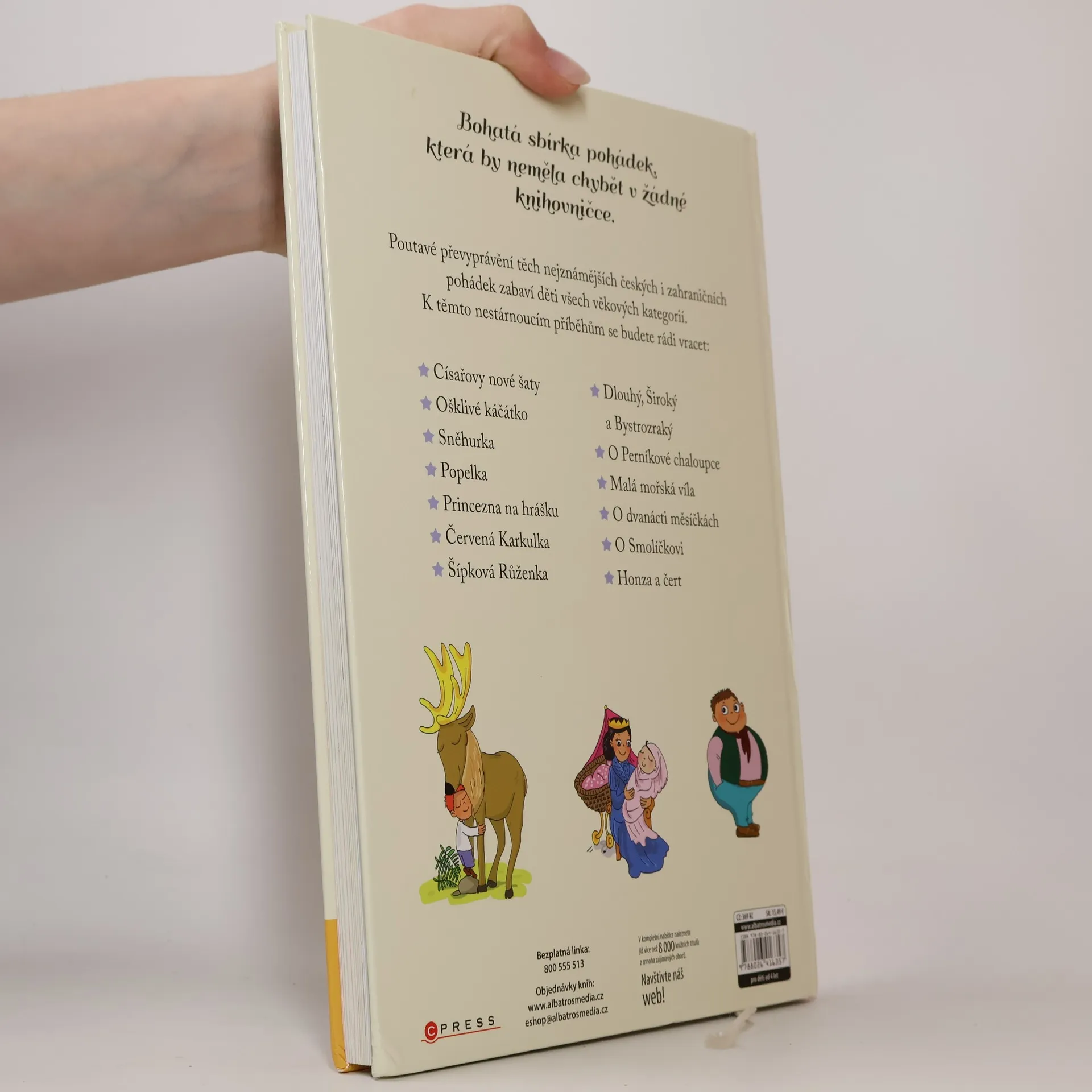 Poutavé převyprávění těch nejznámějších českých i zahraničních pohádek zabaví děti všech věkových kategorií. K těmto nestárnoucím příběhům se budete rádi vracet: * Císařovy nové šaty * Ošklivé káčátko * Sněhurka * Popelka * Princezna na hrášku * Červená Karkulka * Šípková Růženka * Dlouhý, Široký a Bystrozraký * Perníkové chaloupce * Malá mořská víla * dvanácti měsíčkách * Smolíčkovi * Honza a čert