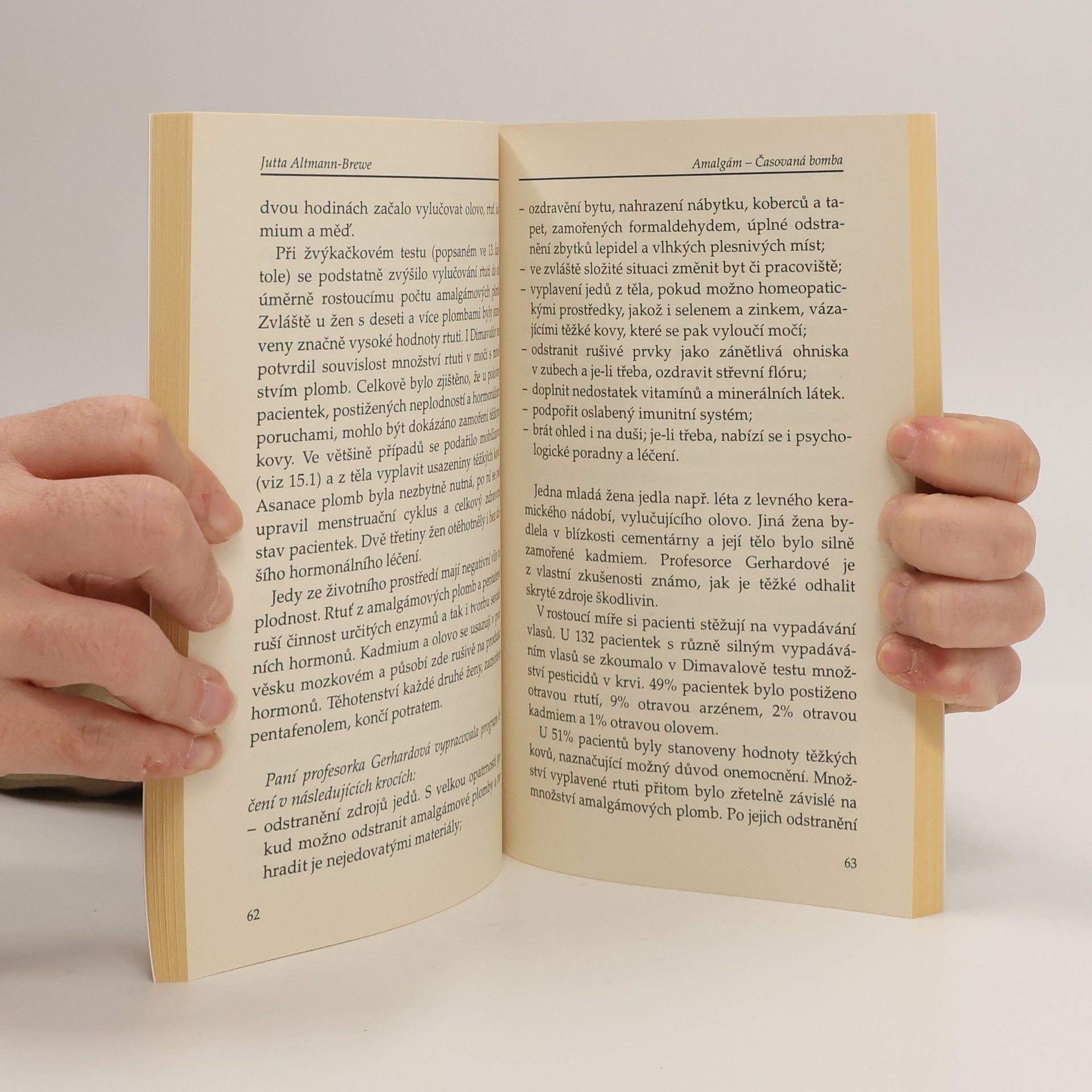 Autorka poukazuje na nebezpečí spojené s amalgámovými plombami v našich ústech a radí, jak se problému zbavit. Kniha přichází se šokujícím zjištěním, po kterém vás začnou brnět všechny opravené zuby. Bylo potvrzeno, že rtuť uvolňující se ze zubních plomb působí velmi škodlivě na lidský organizmus. Nekvalitně provedený stomatologický zásah (jichž je podle statistik až 80 %) se může podepsat dokonce na nevratném poškození tělesných funkcí a vyvolat vážná onemocnění, jakými je například roztroušená skleróza nebo poruchy mozkové činnosti. Autorka nabízí množství řešení, jak tyto negativní vlivy odstraňovat a zároveň zveřejňuje nejnovější poznatky, jež doposud nebyly běžným čtenářům zpřístupněny. (jak se zbavit jedů v ústech, zdravé zuby = základ zdraví)
