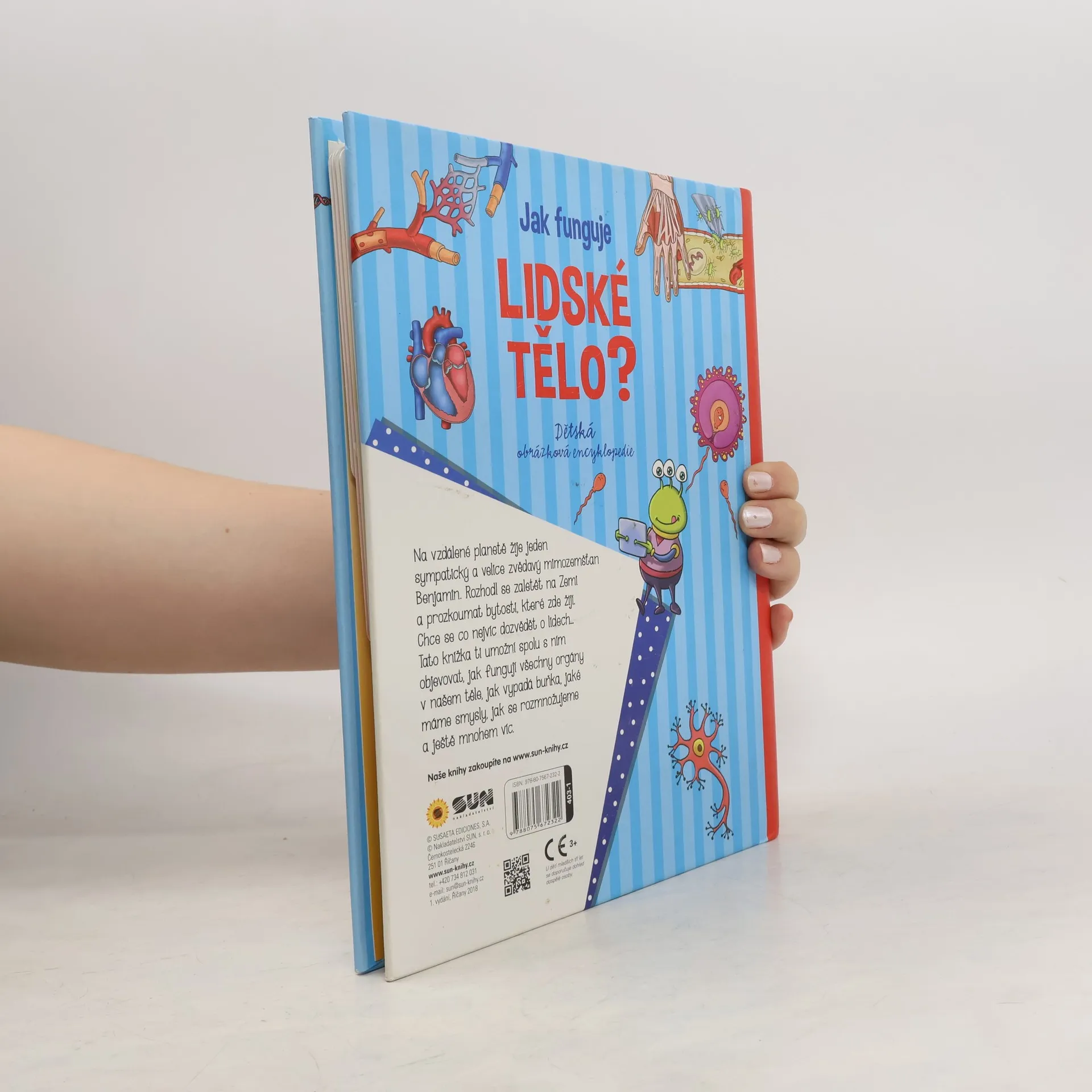 Knížka, která se pokouší dětem objasňovat skladbu lidského těla. Holky a kluci mohou objevovat, jak vypadá buňka, jak vypadá náž kosterní i svalový systém, jak v nás obíhá krev a jaké jsou orgány v našich tělech. V neposlední řadě kniha uvádí pro děti zajímavosti na téma našeho rozmnožování. Knihou provází mimozemský návštěvník Benjamin, který je zvídavý a chce se dozvědět o těle, co nejvíce.
