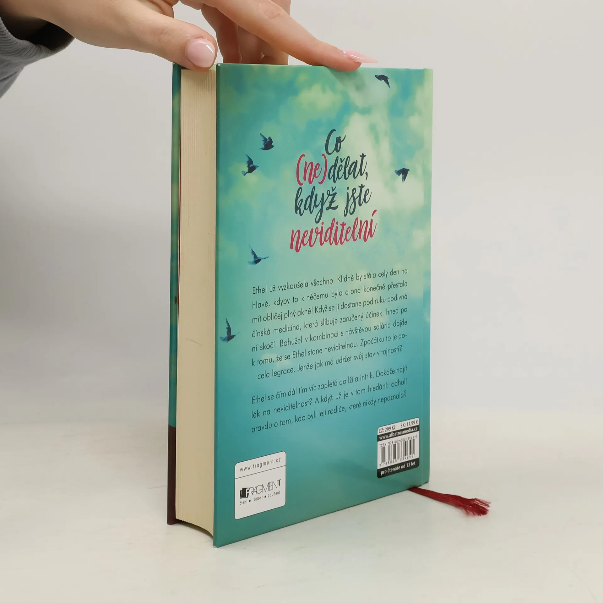 Jak můžeš vědět, kdo jsi, když se ani nevidíš? Tahle neviditelná holka si získá vaše srdce! Ethel už vyzkoušela všechno. Klidně by stála celý den na hlavě, kdyby to k něčemu bylo, a ona konečně přestala mít obličej plný akné! Když se jí dostane pod ruku podivná čínská medicína, která slibuje zaručený účinek, hned po ní skočí. Bohužel v kombinaci s návštěvou solária dojde k tomu, že se Ethel stane neviditelnou. Zpočátku to je docela legrace. Jenže jak má udržet svůj stav v tajnosti? Ethel se čím dál tím víc zaplétá do lží a intrik. Dokáže najít lék na neviditelnost? A když už je v tom hledání: odhalí pravdu o tom, kdo byli její rodiče, které nikdy nepoznala?