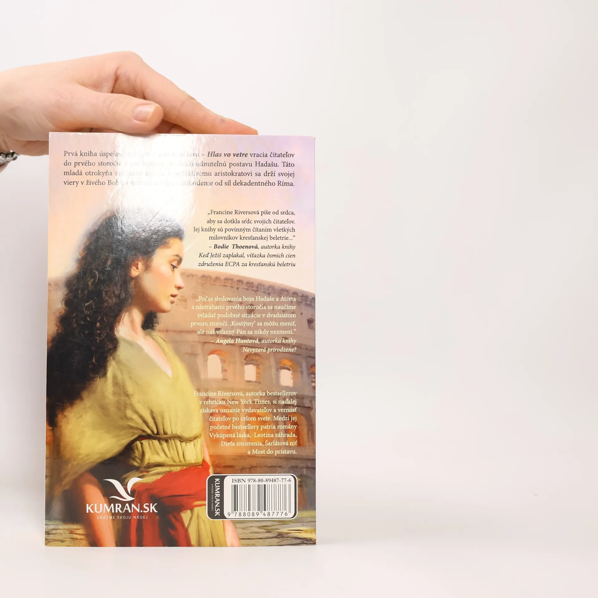 Prvá kniha úspešnej trilógie V znamení leva − Hlas vo vetre vracia čitateľov do prvého storočia a predstavuje im nezabudnuteľnú postavu − Hadašu. Táto mladá otrokyňa zmietaná láskou k príťažlivému aristokratovi sa drží svojej viery v živého Boha a nachádza v nej oslobodenie od síl dekadentného Ríma.