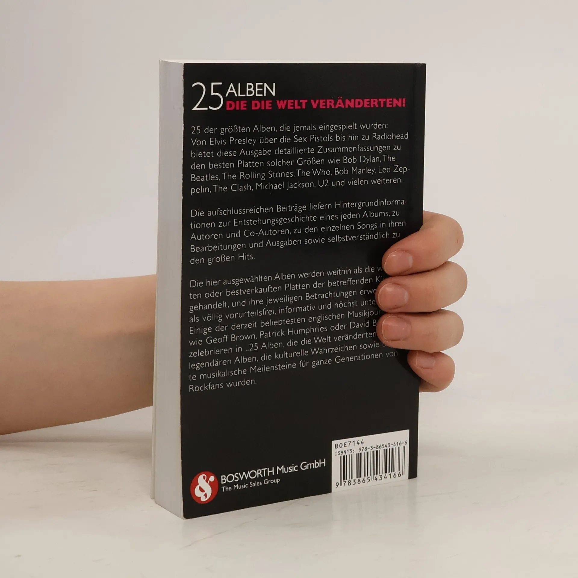 25 der größten Alben, die jemals eingespielt wurden: Von Elvis Presley über die Sex Pistols bis hin zu Radiohead bietet diese Ausgabe detaillierte Zusammenfassungen zu den besten Platten solcher Größen wie Bob Dylan, The Beatles, The Rolling Stones, The Who, Bob Marley, Led Zeppelin, The Clash, Michael Jackson, U2 und vielen weiteren. Die aufschlussreichen Beiträge liefern Hintergrundinformationen zur Entstehungsgeschichte eines jeden Albums, zu Autoren und Co-Autoren, zu den einzelnen Songs in ihren Bearbeitungen und Ausgaben sowie selbstverständlich zu den großen Hits. Die hier ausgewählten Alben werden weithin als die wichtigsten oder bestverkauften Platten der betreffenden Künstler gehandelt, und ihre jeweiligen Betrachtungen erweisen sich als völlig vorurteilsfrei, informativ und höchst unterhaltsam. Einige der derzeit beliebtesten englischen Musikjournalisten wie Geoff Brown, Patrick Humphries oder David Buckley zelebrieren in '25 Alben, die die Welt veränderten' jene legendären Alben, die kulturelle Wahrzeichen sowie begehrte musikalische Meilensteine für ganze Generationen von Rockfans wurden. Originaltitel '25 Albums That Rocked The World' von Omnibus Press.