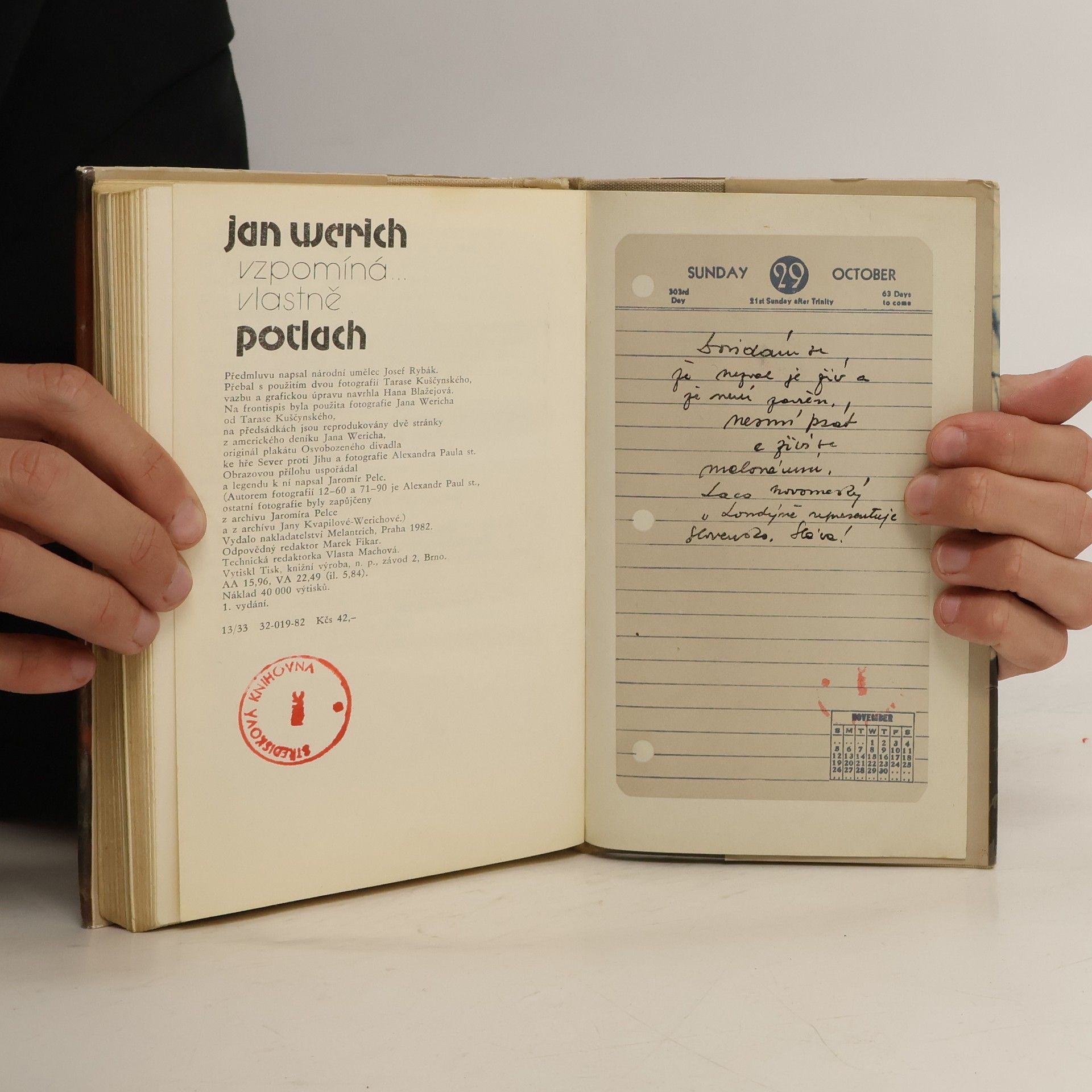 Kniha vzpomínek Jana Wericha na začátky Osvobozeného divadla, na spoluprácí s J.Voskovcem a jejich společný pobyt v USA za 2. světové války. Ve středu knihy je vsazena bohatá fotopříloha (72 stran), tématicky mapující celý obsah knihy. Předmluvu napsal Josef Rybák, obrazovou přílohu uspořádal a legendu k ní napsal Jaromír Pelc.