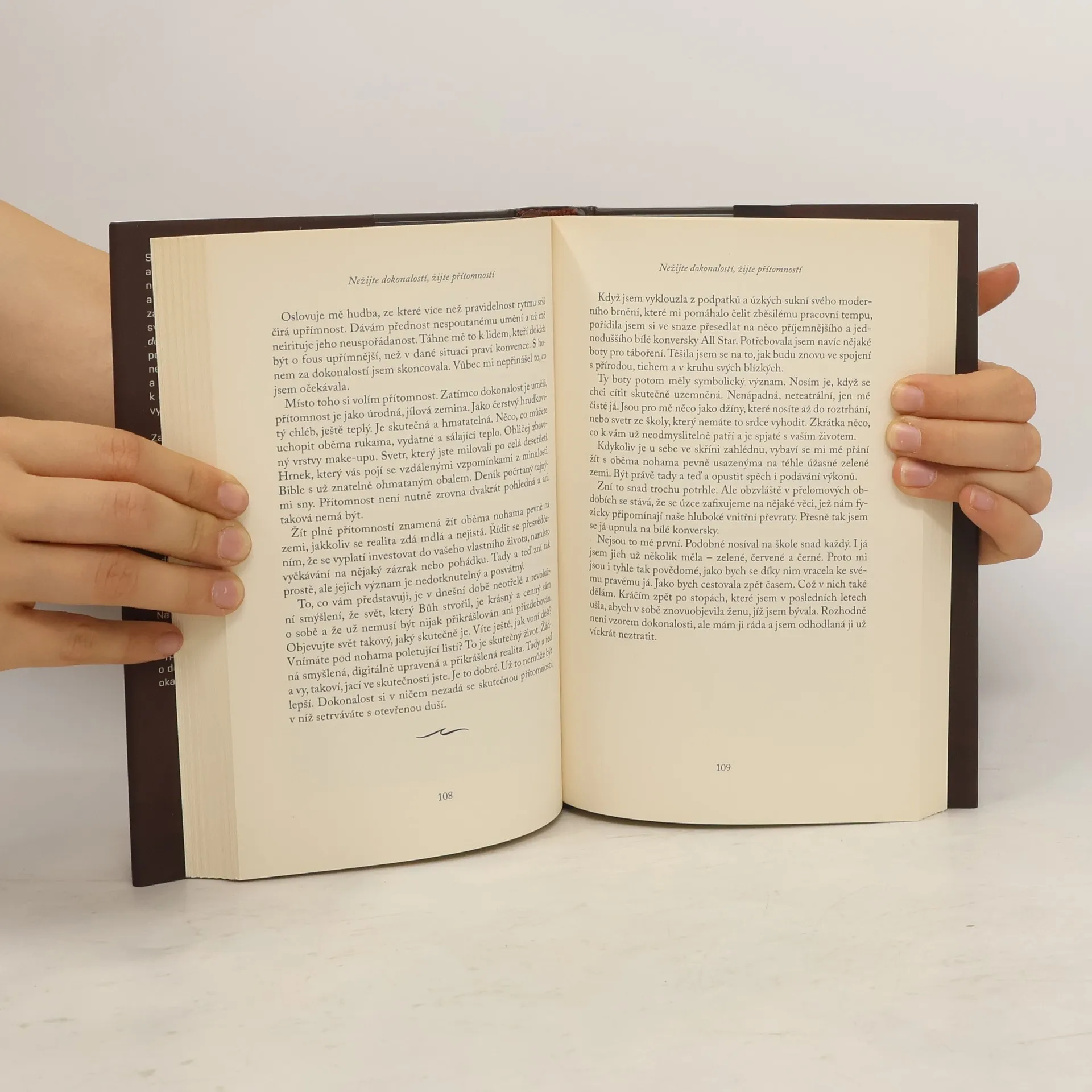 Žijte plnohodnotný život plný lásky a spojení místo touhy po dokonalosti Před několika lety jsem se cítila vyčerpaná a izolovaná, s nemocnou duší i tělem. Byla jsem unavená a vyhořelá. A zdálo se, že téměř každý, s kým jsem mluvila, na tom byl stejně. Jsem žena, matka, dcera, sestra, přítelkyně, sousedka a spisovatelka, a vím až příliš dobře, co znamená vyhoření. Ale v průběhu několika posledních let jsem si osvojila způsob, jak žít v milosti, lásce a klidu. Tato kniha je výzvou k této cestě, která změnila můj život. Půjdu touto cestou s vámi – cestou od zoufalého prosazování se a touhy po dokonalosti v každém směru – směrem k vlastnímu já a uvědomění si své vlastní ceny a předností. Sbírka esejů se zaměřuje na nejdůležitější transformaci života – od zběsilého shonu k uklidnění a spokojeností sama se sebou