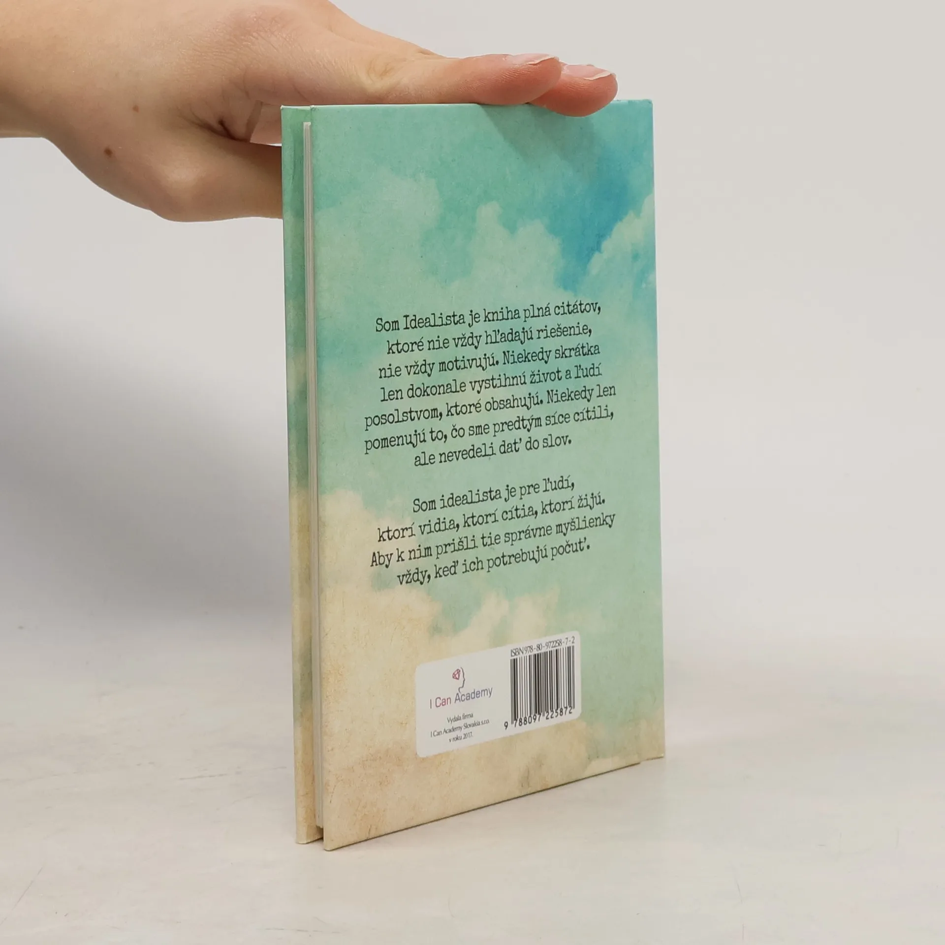 Som idealista je kniha plná citátov, ktoré nie vždy hľadajú riešenie, nie vždy motivujú. Niekedy skrátka len dokonale vystihnú život a ľudí posolstvom, ktoré obsahujú. Niekedy len pomenujú to, čo sme predtým síce cítili, ale nevedeli dať do slov. Som idealista je pre ľudí, ktorí vidia, ktorí cítia, ktorí žijú. Aby k nim prišli tie správne myšlienky vždy, keď ich potrebujú počuť.