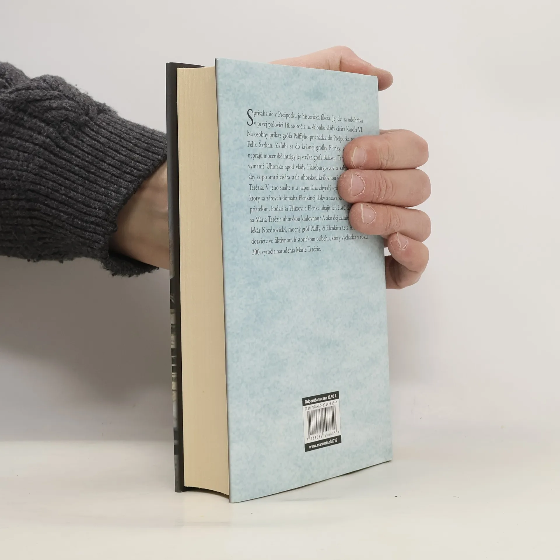 Sprisahanie v Prešporku je historická fikcia. Jej dej sa odohráva v prvej polovici 18. storočia na sklonku vlády cisára Karola VI. Na osobný príkaz grófa Pálffyho prichádza do Prešporka poručík Félix Šarkan. Zaľúbi sa do krásnej grófky Elenky, ale ich láske neprajú mocenské intrigy jej strýka grófa Balassu. Ten sa rozhodne vymaniť Uhorsko spod vlády Habsburgovcov a zabrániť tomu, aby sa po smrti cisára stala uhorskou kráľovnou jeho dcéra Mária Terézia. V jeho snahe mu napomáha zhýralý gróf Ľudovít Király, ktorý sa zároveň domáha Elenkinej lásky a stáva sa Félixovým nepriateľom. Podarí sa Félixovi a Elenke uhájiť ich čistú lásku? Stane sa Mária Terézia uhorskou kráľovnou? A ako dej zamieša roztržitý lekár Nozdrovický, mocný gróf Pálffy, či Elenkina teta Alžbeta, sa dozviete vo fiktívnom historickom príbehu, ktorý vychádza v roku 300. výročia narodenia Márie Terézie.