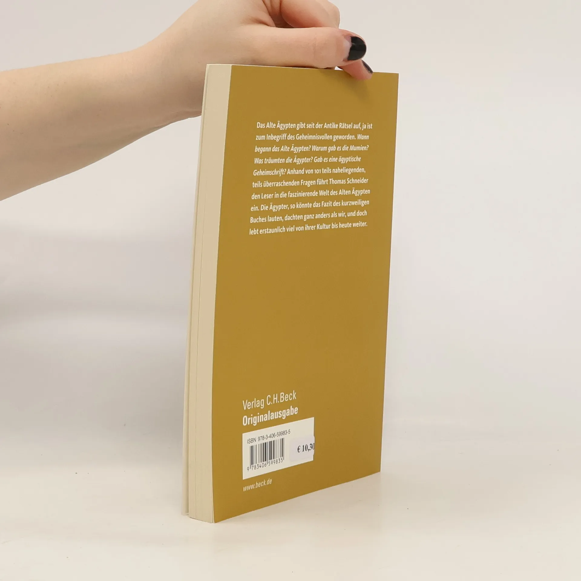 Das Alte Ägypten gibt seit der Antike Rätsel auf, ja ist zum Inbegriff des Geheimnisvollen geworden. Wann begann das Alte Ägypten? Wie wurde die Cheopspyramide gebaut? Wer konnte die Hieroglyphen lesen? Warum verehrten die Ägypter Tiere? Leben wir heute noch nach ägyptischem Rhythmus? Anhand von 101 teils naheliegenden, teils überraschenden oder gar respektlosen Fragen führt Thomas Schneider den Leser in die Welt der alten Ägypter ein. Er erläutert ihr Weltbild und die Bedeutung von Göttern und Gräbern, Hieroglyphen und Literatur, Architektur und Kunst.