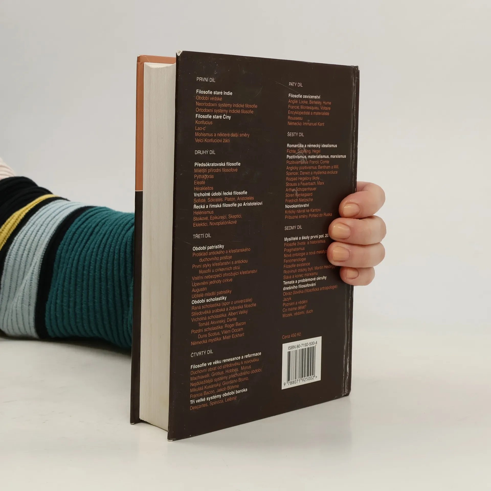 U nás asi nejrozšířenější přehledné dějiny filosofie z pera německého autora vycházejí již po sedmé, v nové přepracované a rozšířené úpravě. Znovu si můžete připomenout, jakou úlohu hrálo myšlení v různých epochách, jaké řešení se nabízela na cestě poznání nebo jak se nahlížela otázka boha. Kniha je uspořádána chronologicky a dále podle osobností či směrů.