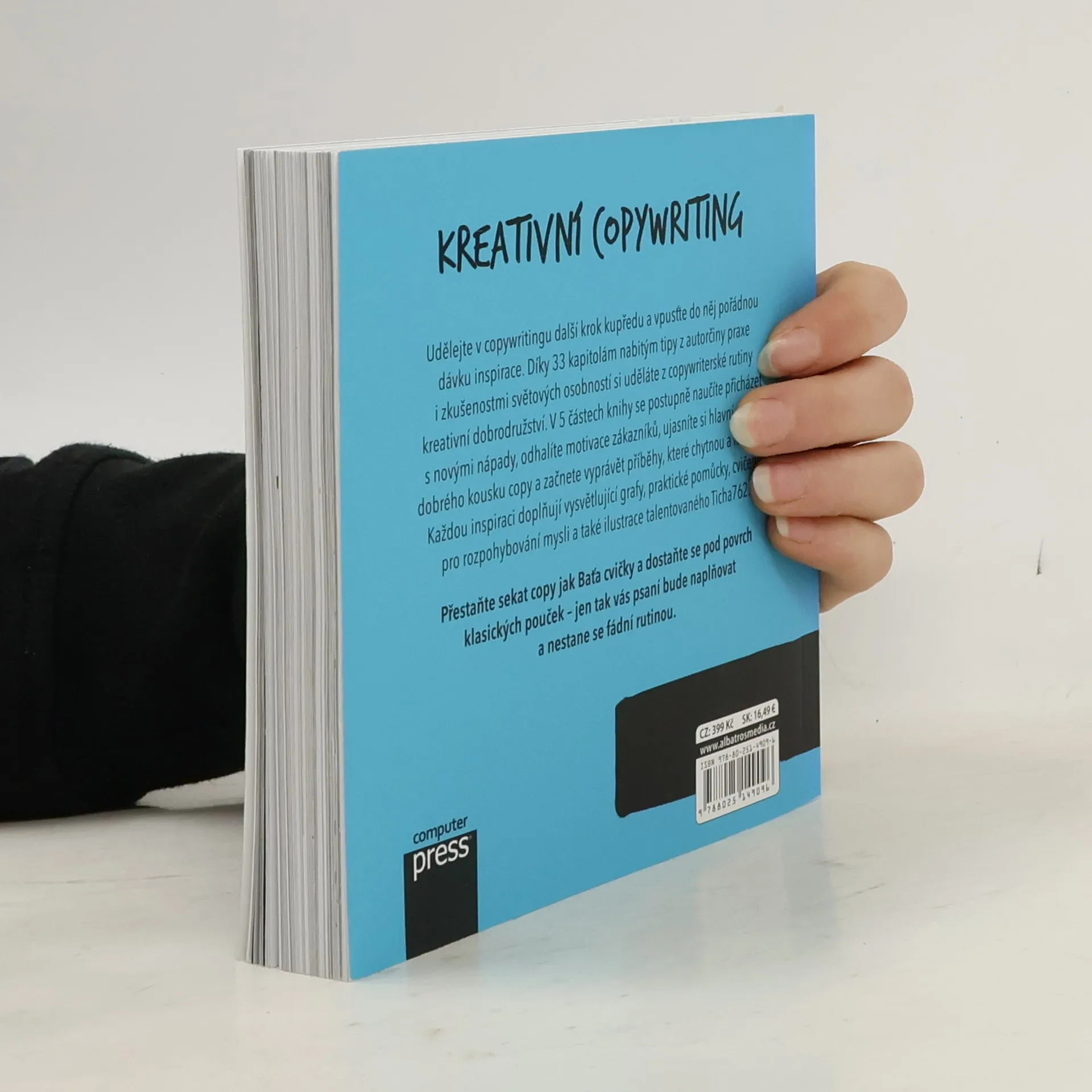 33 inspirací pro ještě lepší copywriting Udělejte v copywritingu další krok kupředu a vpusťte do něj pořádnou dávku inspirace. Díky 33 kapitolám nabitým tipy z autorčiny praxe i zkušenostmi světových osobností si uděláte z copywriterské rutiny kreativní dobrodružství. V 5 částech knihy se postupně naučíte přicházet s novými nápady, odhalíte motivace zákazníků, ujasníte si hlavní složky dobrého kousku copy a začnete vyprávět příběhy, které chytnou a nepustí. Každou inspiraci doplňují vysvětlující grafy, praktické pomůcky, cvičení pro rozpohybování mysli a také ilustrace talentovaného Ticha762. Přestaňte sekat copy jak Baťa cvičky a dostaňte se pod povrch klasických pouček – jen tak vás psaní bude naplňovat a nestane se fádní rutinou. O autorce: Anička Sálová se věnuje copywritingu a online marketingu přes 5 let. V tehdy největší online marketingové agentuře ČR – H1.cz – to dotáhla až na vedoucí tamního copytýmu. Odtud už byl jen krůček k založení vlastní obsahové agentury Content Wizards. Jako content strategist pomáhá online projektům najít vlastní hlas a školí veřejnost i firmy.