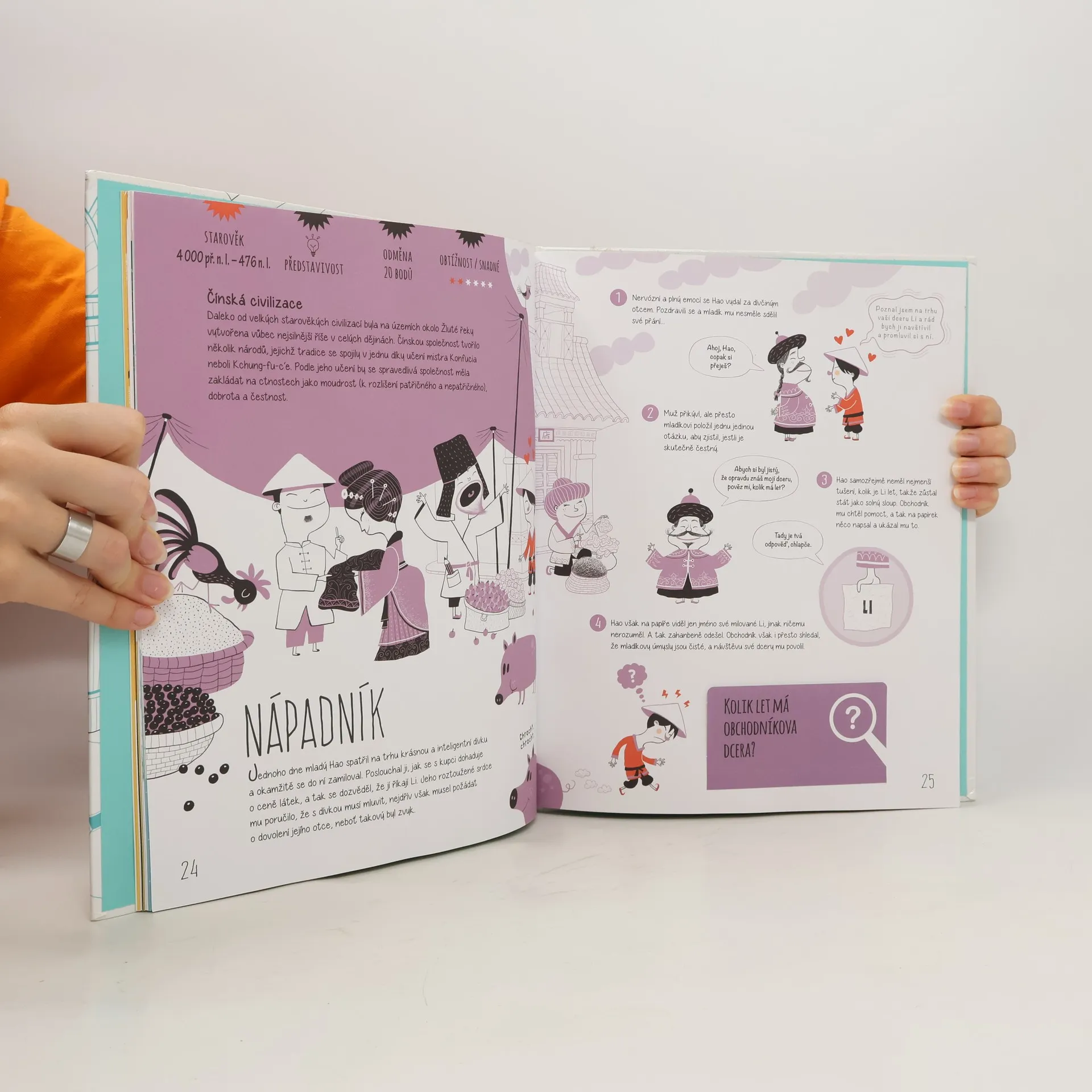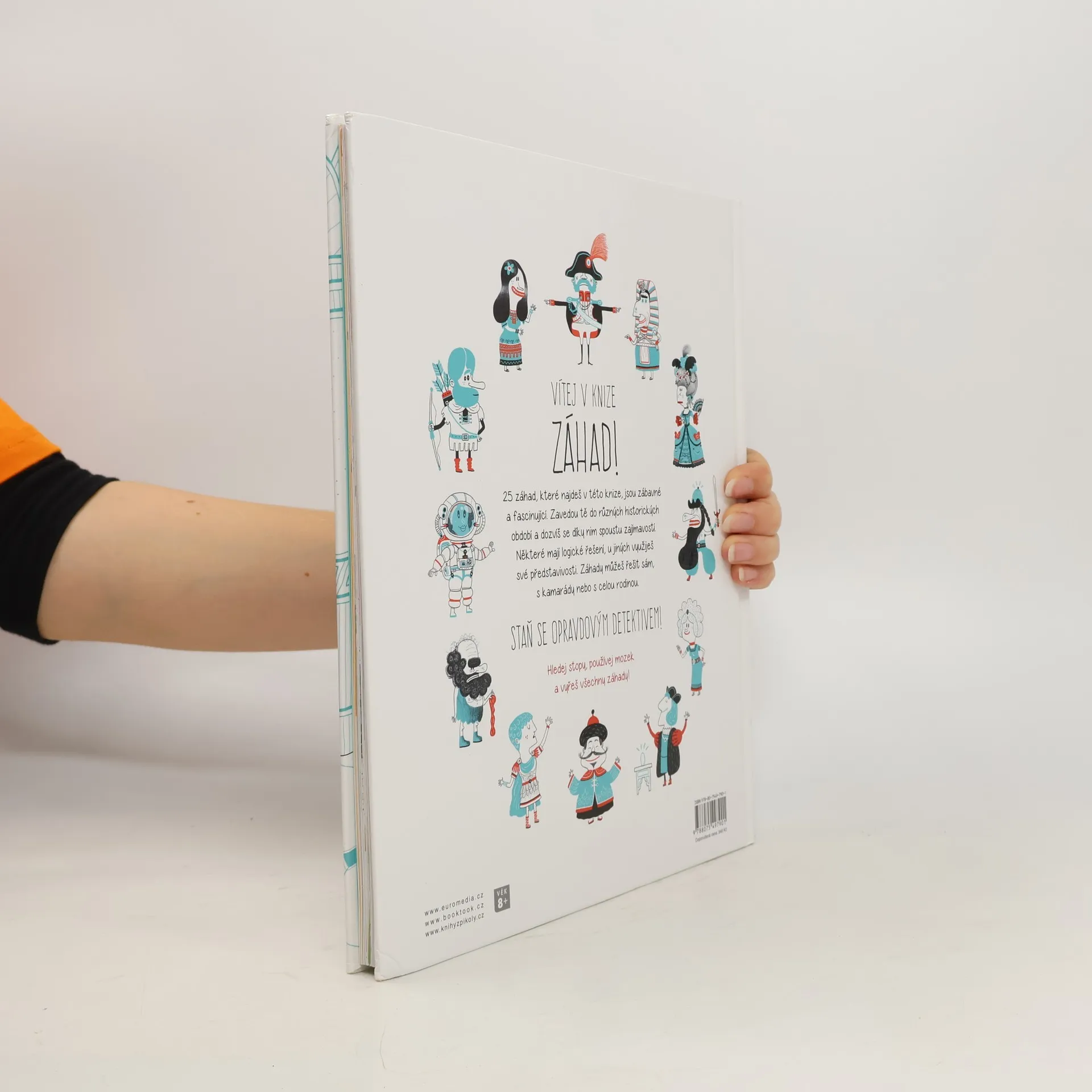Vítej v knize záhad! Přijdeš na kloub 25 tajuplným záhadám z oblasti historie? Některé mají logické řešení, u jiných využiješ své představivosti. A hlavně – hledej v zábavných obrázcích, a stopu máš nadosah. Záhady můžeš řešit sám, s kamarády nebo s celou rodinou. Staň se opravdovým detektivem! Hledej stopy, používej mozek a vyřeš všechny záhady. Věnováno dětem od 8 let a jejich rodičům, kteří mají chuť přicházet na kloub záhadám.