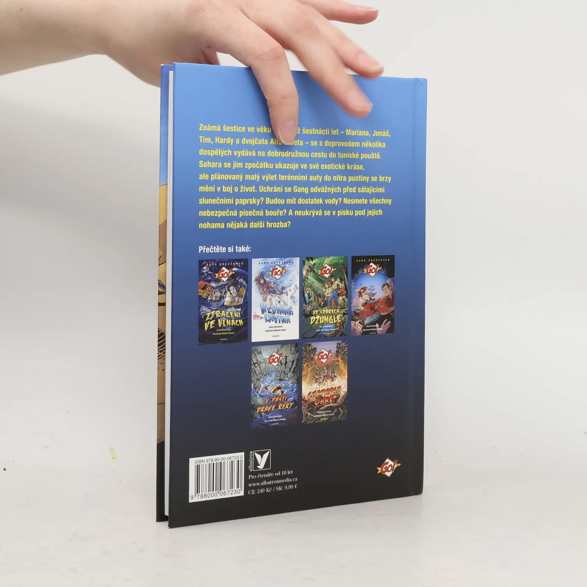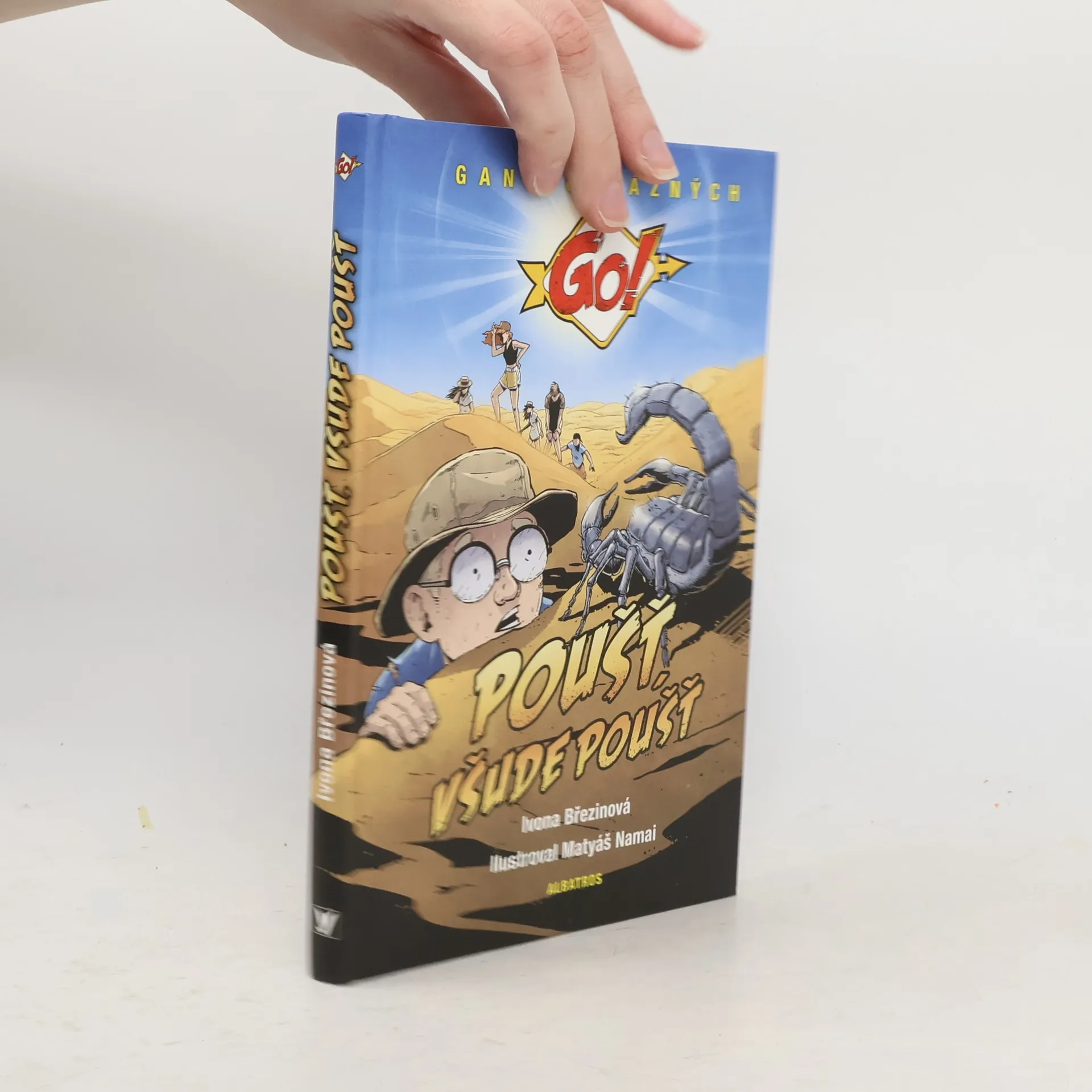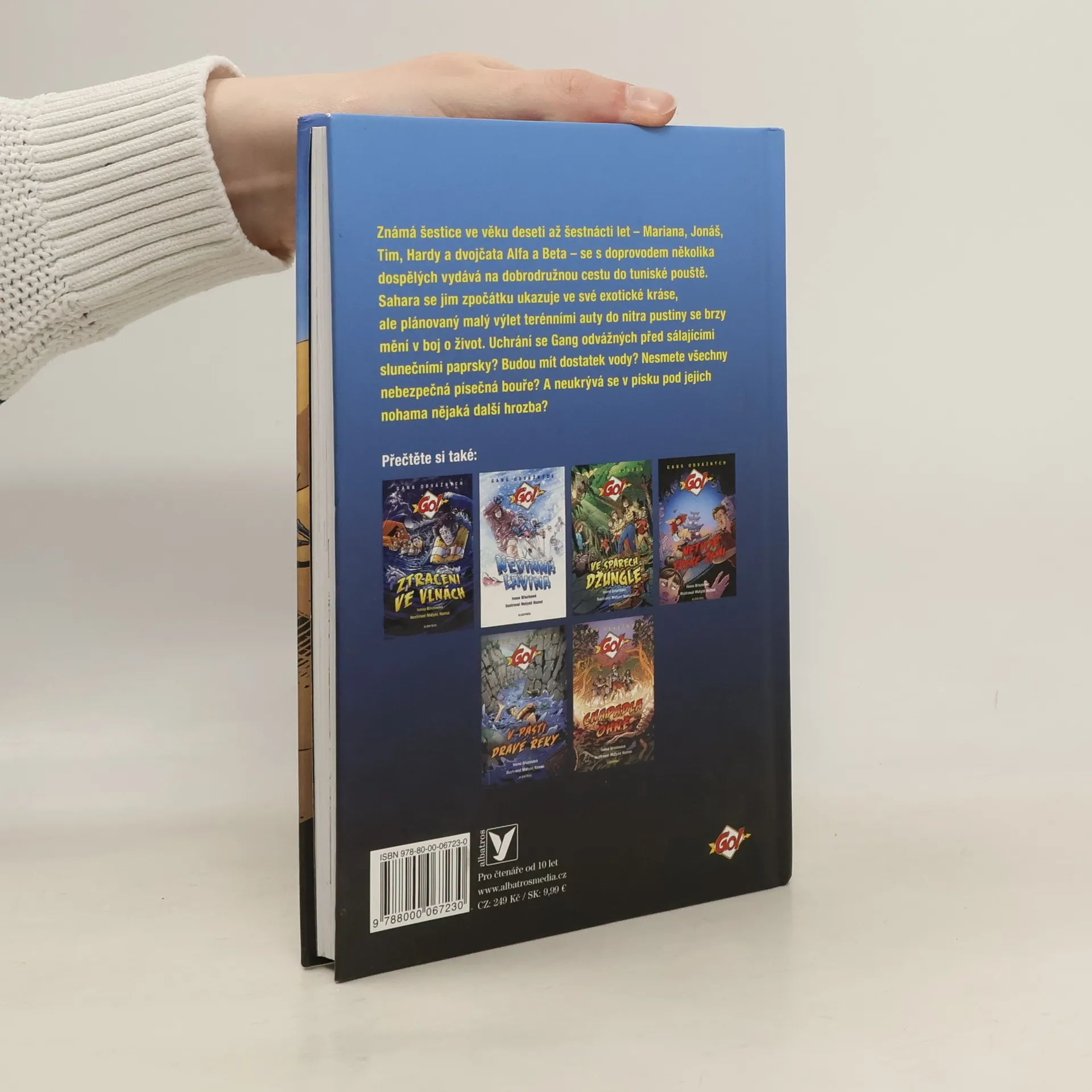 Čtvrtá kniha ze série napínavých příběhů o přežití Gang odvážných neboli GO! Známá šestice ve věku deseti až šestnácti let – Mariana, Jonáš, Tim, Hardy a dvojčata Alfa a Beta – se s doprovodem několika dospělých vydává na dobrodružnou cestu do tuniské pouště. Sahara se jim zpočátku ukazuje ve své exotické kráse, ale plánovaný malý výlet terénními auty do nitra pustiny se brzy mění v boj o život. Uchrání se Gang odvážných před sálajícími slunečními paprsky? Budou mít dostatek vody? Nesmete všechny nebezpečná písečná bouře? A neukrývá se v písku pod jejich nohama nějaká další hrozba? Čtvrtý příběh série GO! Vyšlo již Ztraceni ve vlnách, Nevinná lavina, Ve spárech džungle.