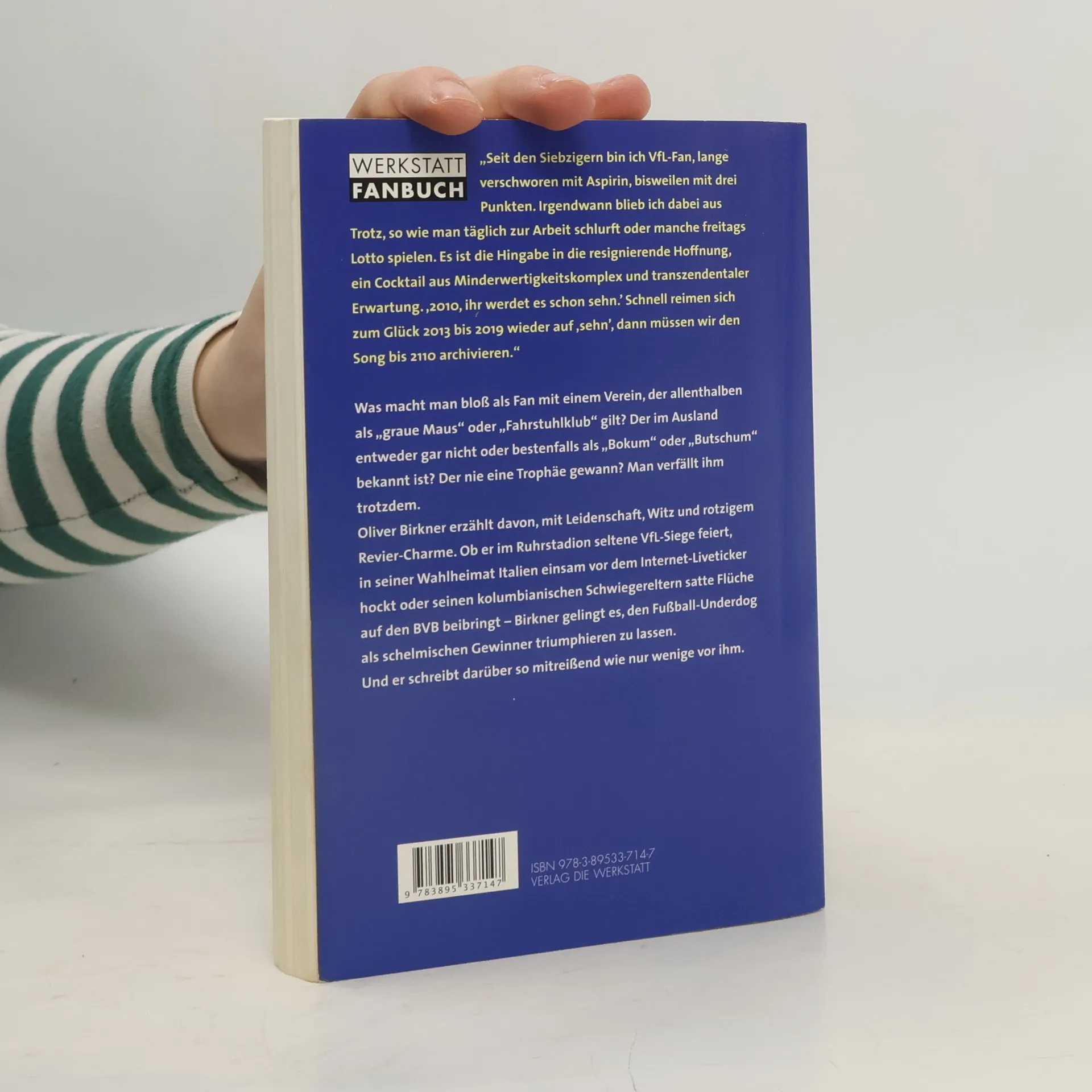 Was macht man bloß als Fan mit einem Verein, der allenthalben als „graue Maus“ oder „Fahrstuhlklub“ gilt? Der im Ausland entweder gar nicht oder bestenfalls als „Bokum“ oder „Butschum“ bekannt ist? Der nie eine Trophäe gewann? Man verfällt ihm trotzdem. Oliver Birkner erzählt davon, mit Leidenschaft, Witz und rotzigem Revier-Charme. Ob er im Ruhrstadion seltene VfL-Siege feiert, in seiner Wahlheimat Italien einsam vor dem Internet- Liveticker hockt oder seinen kolumbianischen Schwiegereltern satte Flüche auf den BVB beibringt – Birkner gelingt es, den Fußball-Underdog als schelmischen Gewinner triumphieren zu lassen. Und er schreibt darüber so mitreißend wie nur wenige vor ihm.