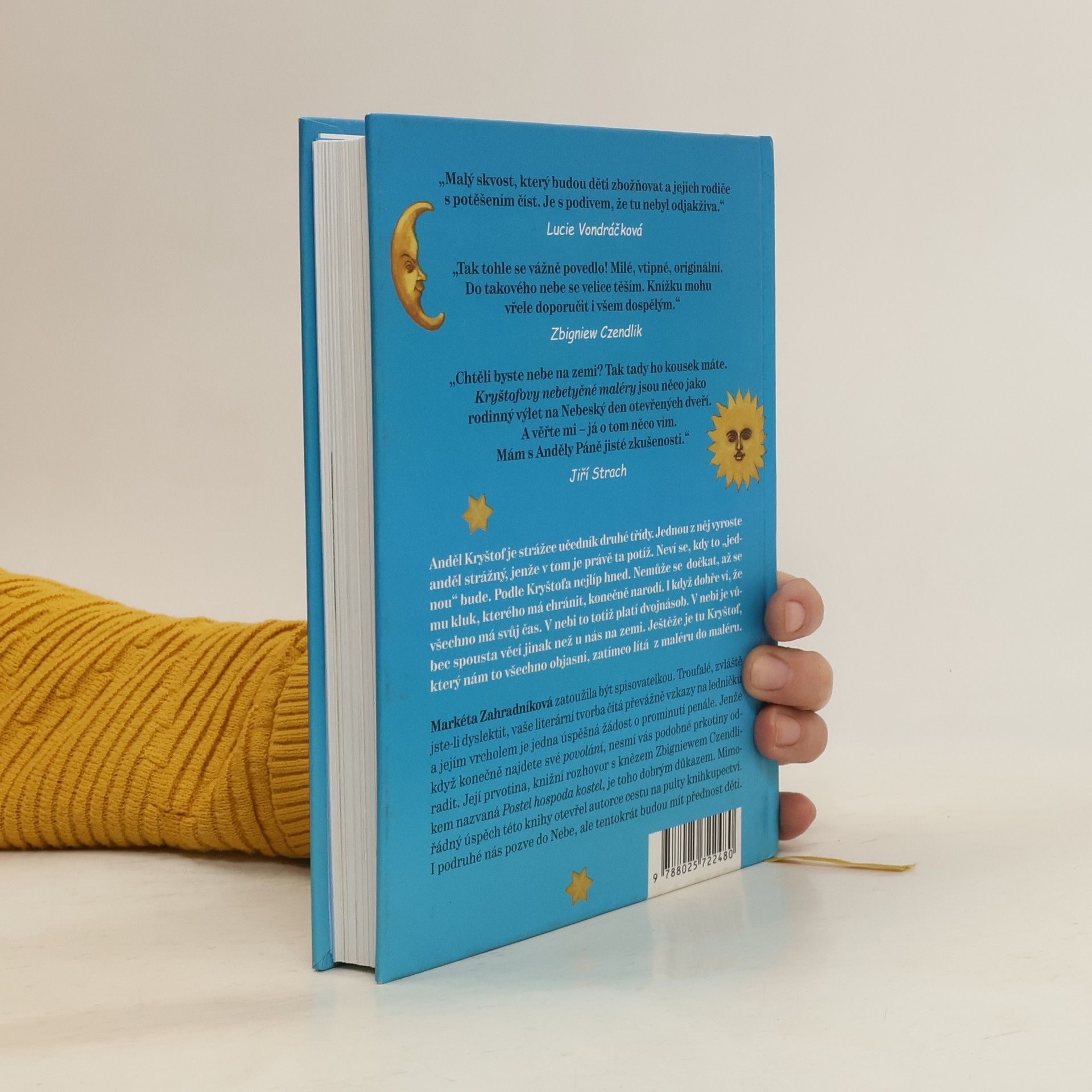 Anděl Kryštof je strážce učedník druhé třídy. Jednou z něj vyroste anděl strážný, jenže v tom je právě ta potíž. Neví se, kdy to „jednou“ bude. Podle Kryštofa nejlíp hned. Nemůže se dočkat, až se mu jeho svěřenec – kluk se stejným jménem – konečně narodí. Všechno má totiž svůj čas, což v nebi platí dvojnásob. V nebi je vůbec spousta věcí jinak než dole na zemi. Naštěstí je tu Kryštof, který nám to všechno stihne objasnit, zatímco lítá z maléru do maléru. Nejspíš budete vejrat, zírat nebo čubrnět, protože má pro vás ty nejžhavější nebeské novinky. Zkrátka pokud ještě nemáte vlastní nebe, doporučuji navštívit to Kryštofovo ve veselých příbězích o trampotách jednoho malého raubíře, který je shodou okolností budoucí anděl strážný. Na místě je však varování – toto vyprávění nemá uspávat, ale probouzet.
