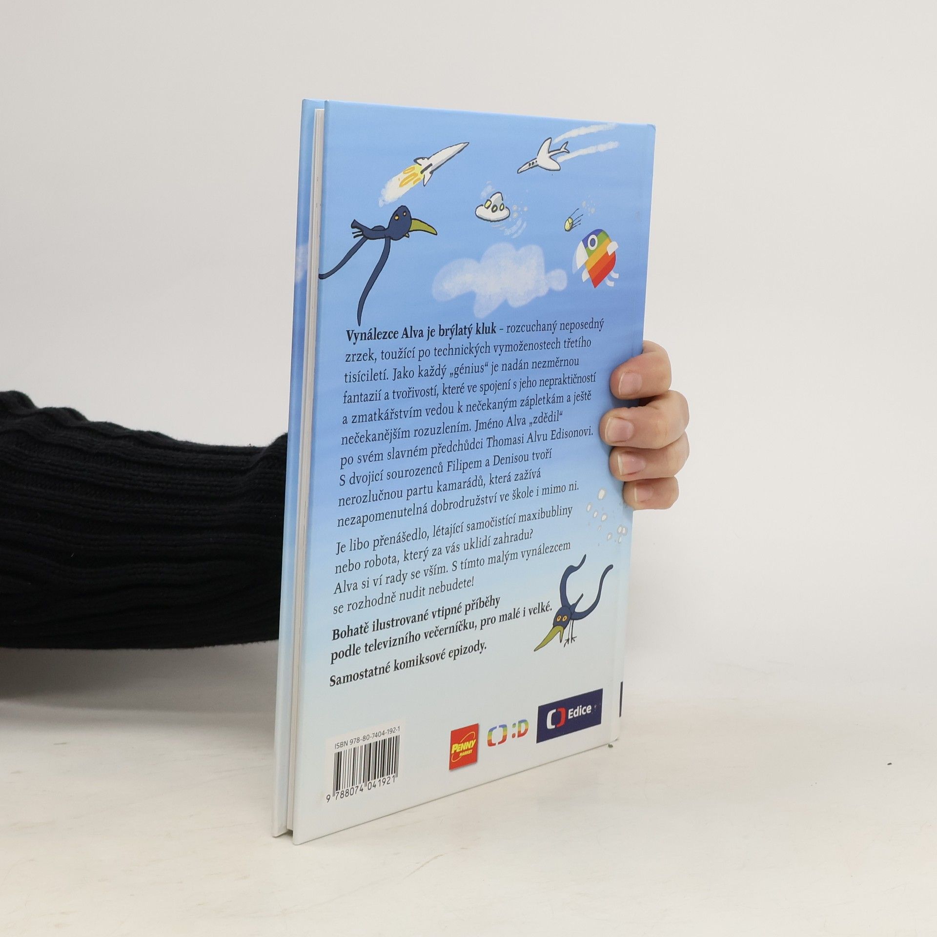 Je libo raketobrusle, přenášedlo, létající samočistící maxibubliny nebo robota, který za vás uklidí zahradu? Alva si ví rady se vším. S tímto vynálezcem se rozhodně nudit nebudete! Vynálezce Alva je brýlatý kluk – rozcuchaný neposedný zrzek, toužící po technických vymoženostech třetího tisíciletí. Jméno Alva „zdědil“ po svém slavném předchůdci T. A. Edisonovi. Jako každý génius je nadán nezměrnou fantazií a tvořivostí, které ve spojení s jeho nepraktičností a zmatkářstvím vedou k nečekaným zápletkám a ještě nečekanějším rozuzlením. S dvojicí sourozenců Filipem a Denisou tvoří nerozlučnou partu kamarádů, která zažívá neuvěřitelná dobrodružství ve škole i mimo ni. Náš příběh začíná první školní den… Bohatě ilustrované vtipné příběhy podle televizního večerníčku, pro malé i velké. 2.,upravené vydání.