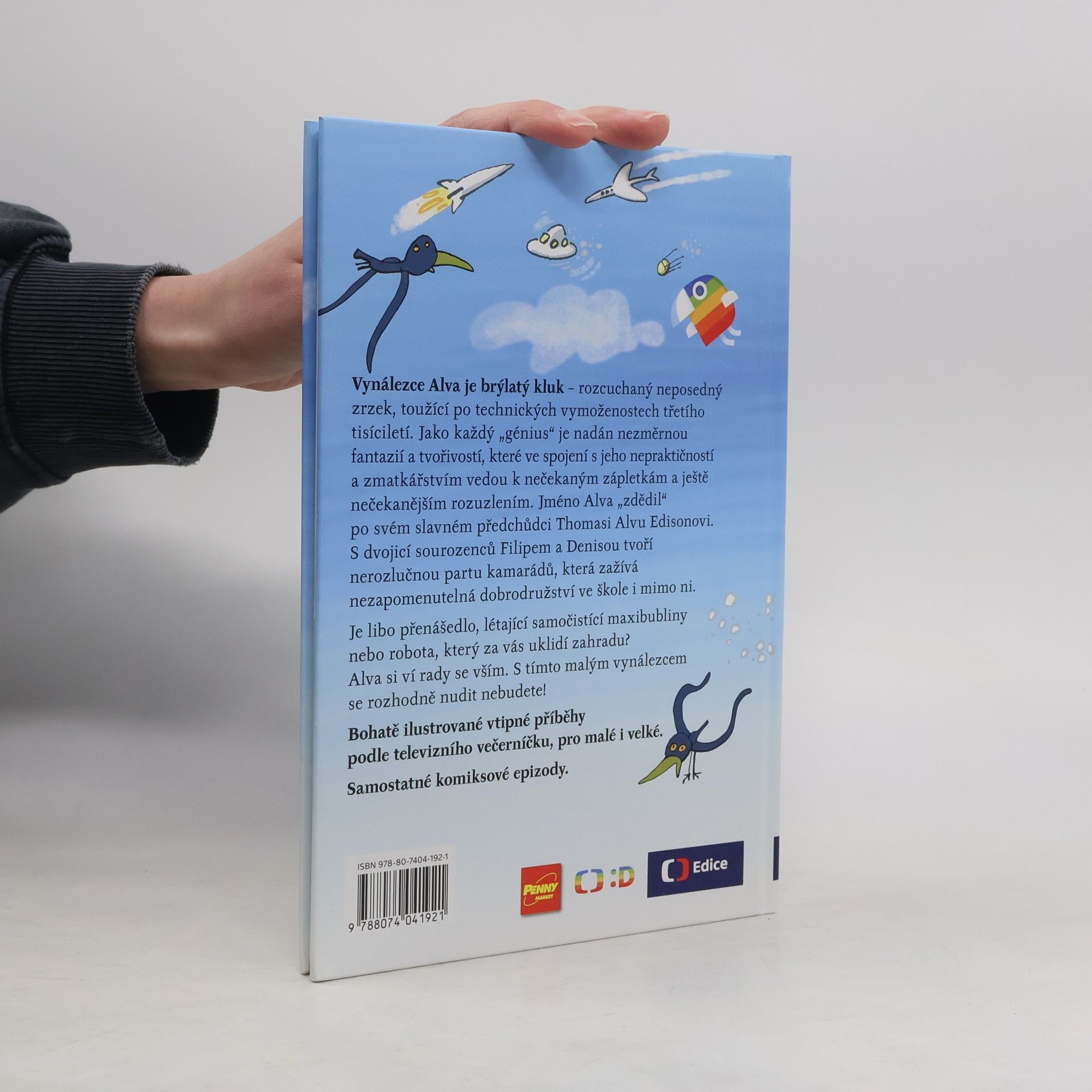 Je libo raketobrusle, přenášedlo, létající samočistící maxibubliny nebo robota, který za vás uklidí zahradu? Alva si ví rady se vším. S tímto vynálezcem se rozhodně nudit nebudete! Vynálezce Alva je brýlatý kluk – rozcuchaný neposedný zrzek, toužící po technických vymoženostech třetího tisíciletí. Jméno Alva „zdědil“ po svém slavném předchůdci T. A. Edisonovi. Jako každý génius je nadán nezměrnou fantazií a tvořivostí, které ve spojení s jeho nepraktičností a zmatkářstvím vedou k nečekaným zápletkám a ještě nečekanějším rozuzlením. S dvojicí sourozenců Filipem a Denisou tvoří nerozlučnou partu kamarádů, která zažívá neuvěřitelná dobrodružství ve škole i mimo ni. Náš příběh začíná první školní den… Bohatě ilustrované vtipné příběhy podle televizního večerníčku, pro malé i velké. 2.,upravené vydání.
